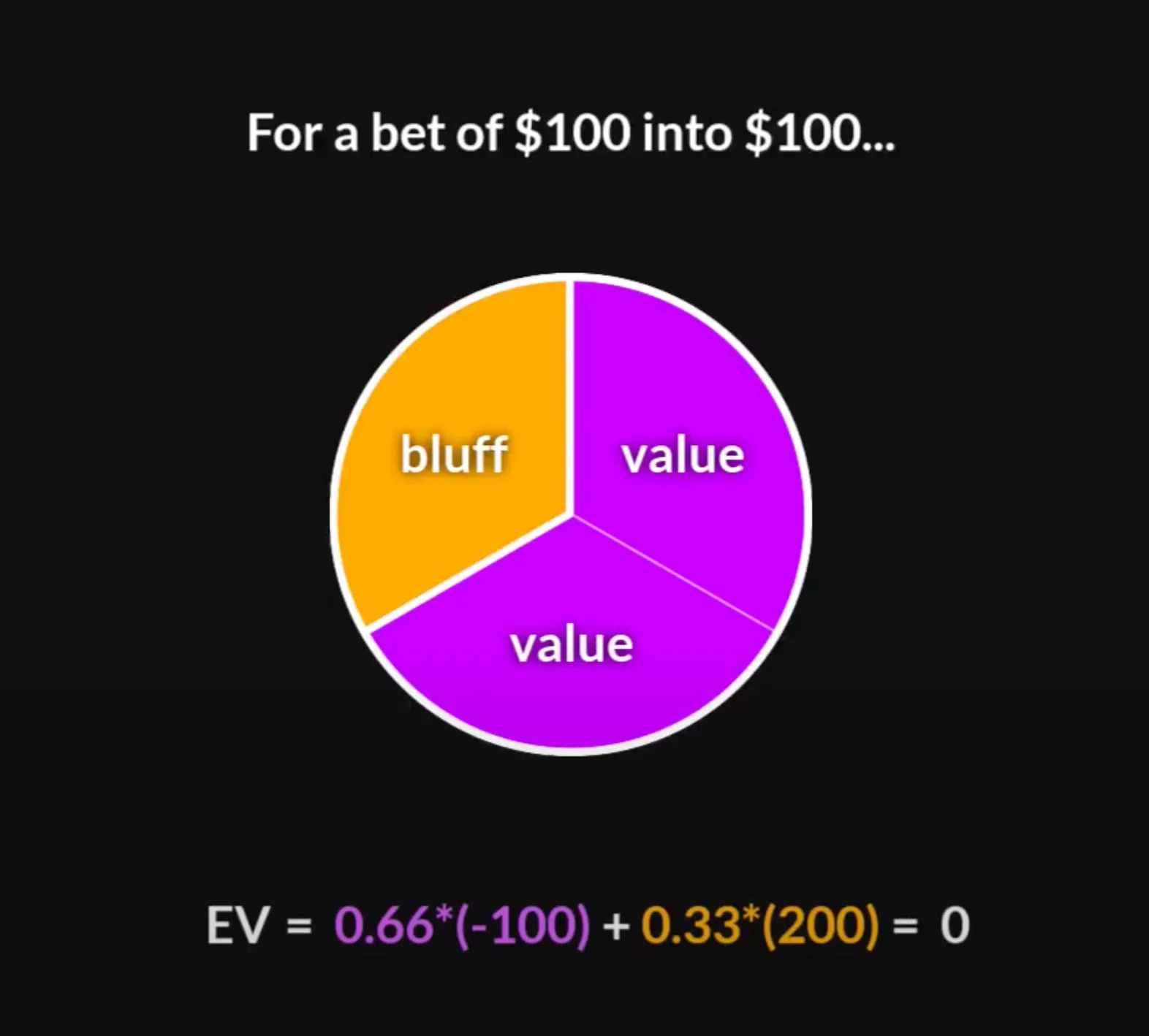 For a pot-sized bet, our opponent needs to have two value hands for every one bluff. If they can do that, then the EV of our call is exactly zero. If our hand has good blockers - that is, we block value and unblock bluffs, then this adds a bit of juice to our call. This juice can be worth anywhere from a fraction of a big blind to five or even ten big blinds — it really depends on how strong our blocker effects are.