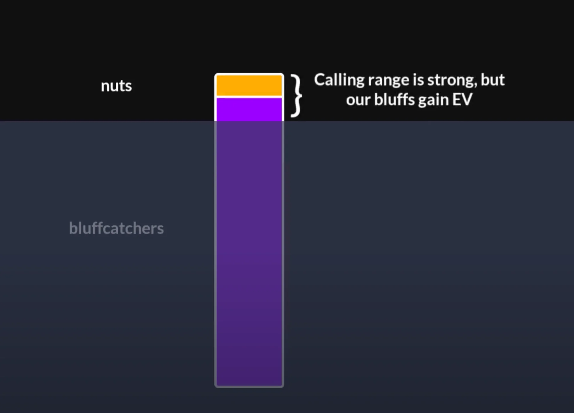 The bigger we bet, the more they can fold, leaving behind a range that gets progressively stronger. This is fine if they have a small proportion of nuts: in this case, they either have to pay us off with plenty of bluff catchers, or overfold and allow our bluffs to make a profit.