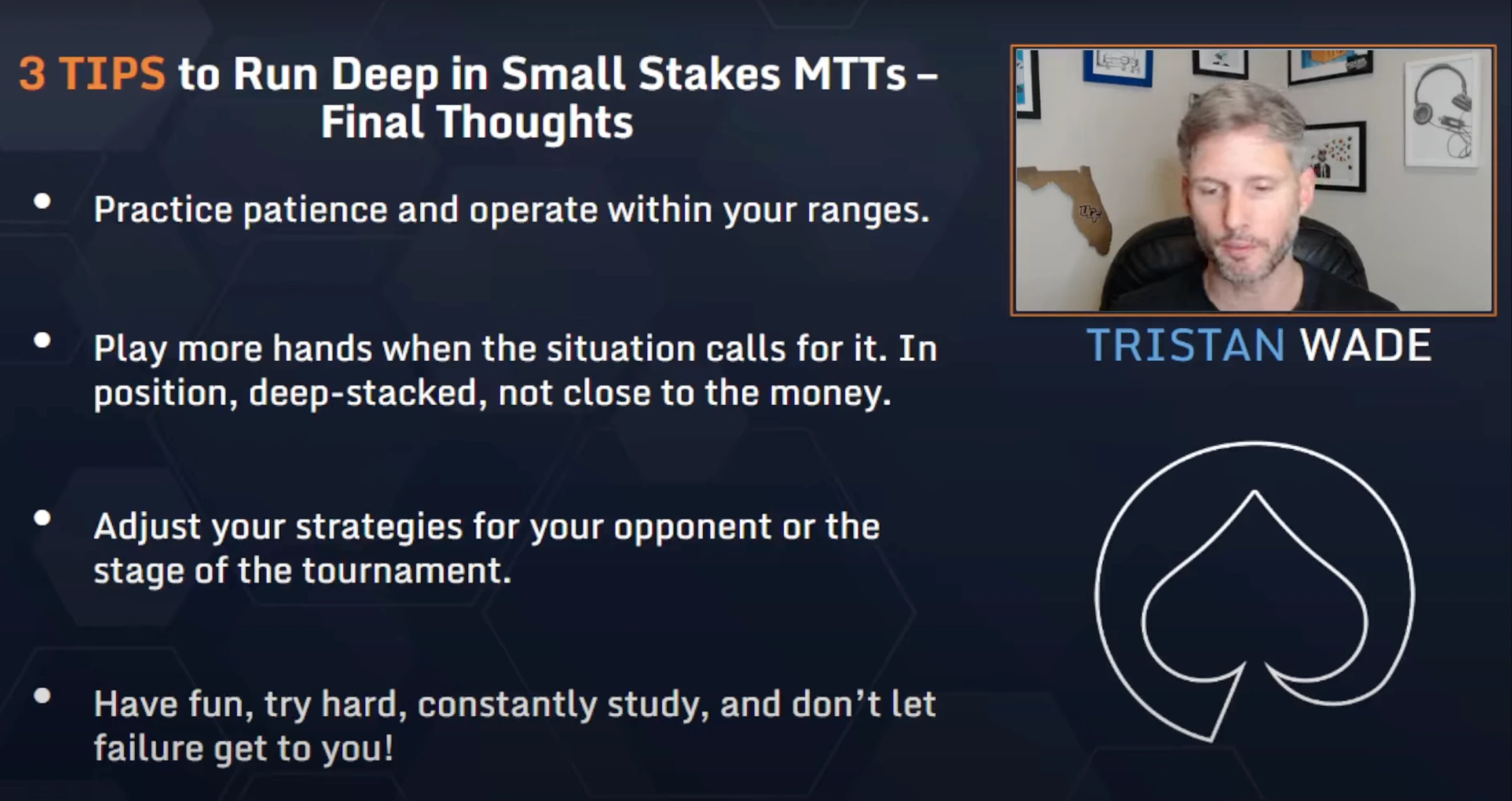 Hey there, and welcome to MyPokerCoaching. I’m your coach, Tristan Wade, and today we’re going to talk about three tips to run deep in small stakes tournaments. Let’s get right into it. Do you struggle in small stakes MTTs? Think for a moment — what are your biggest challenges?