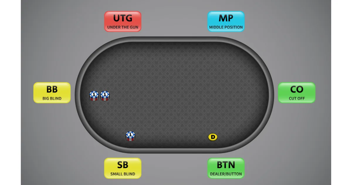 To help visualize it, imagine a standard 6-max poker table. The positions are: