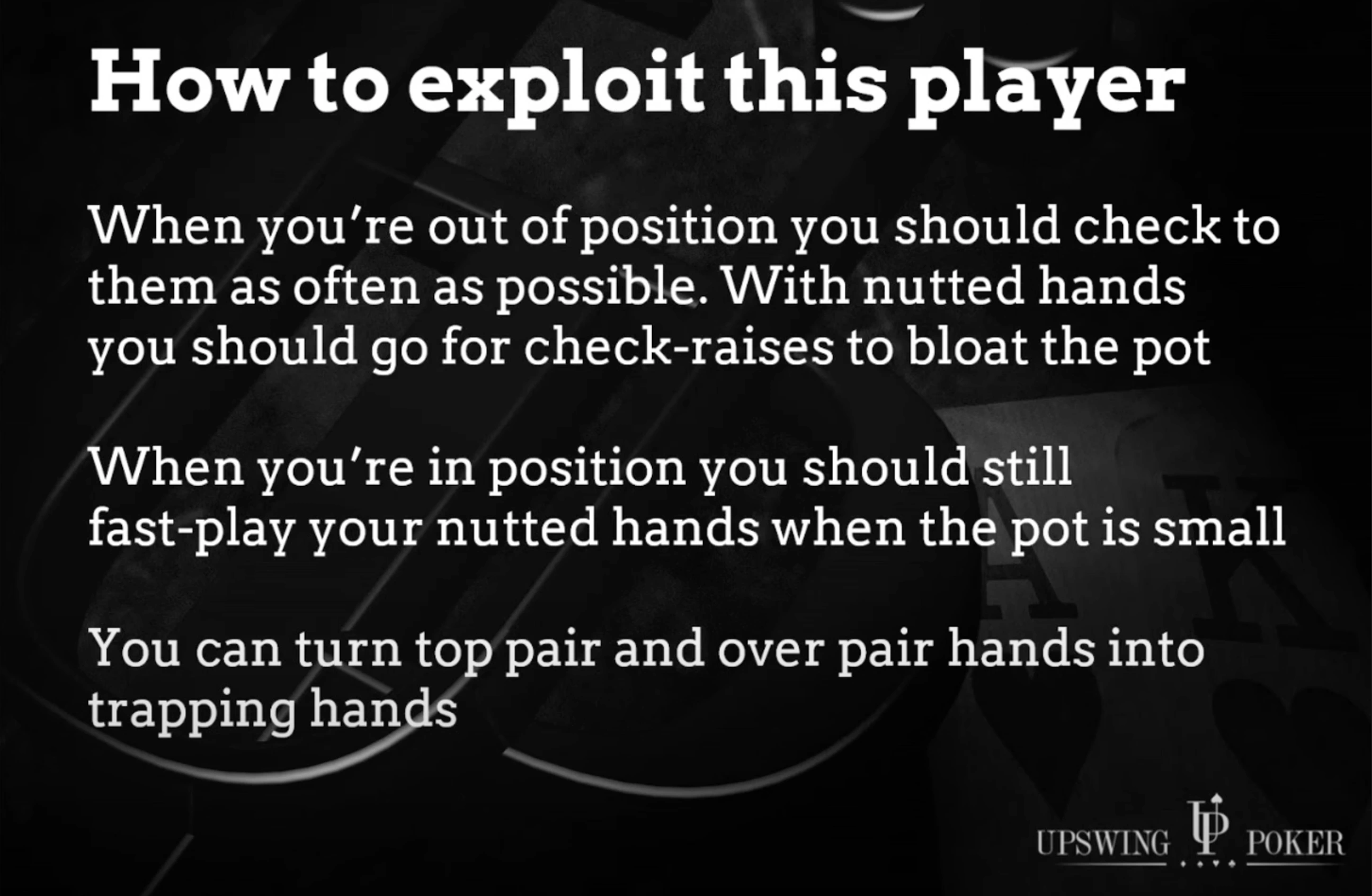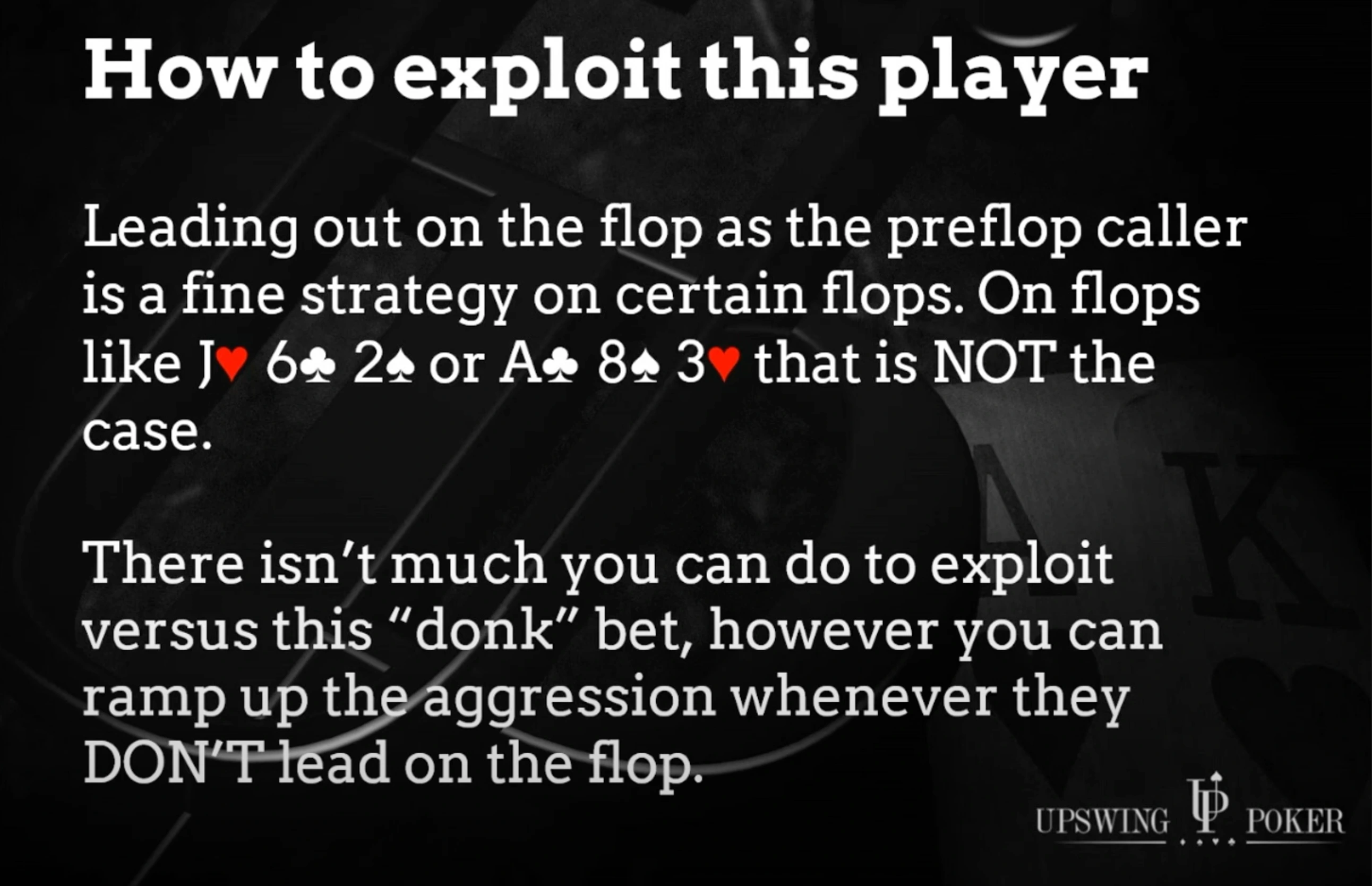 Funnily enough, there’s not much we can do to exploit when these players donk into us. But once they've revealed themselves to be a donker, you can exploit them whenever they don’t donk on the flop.
