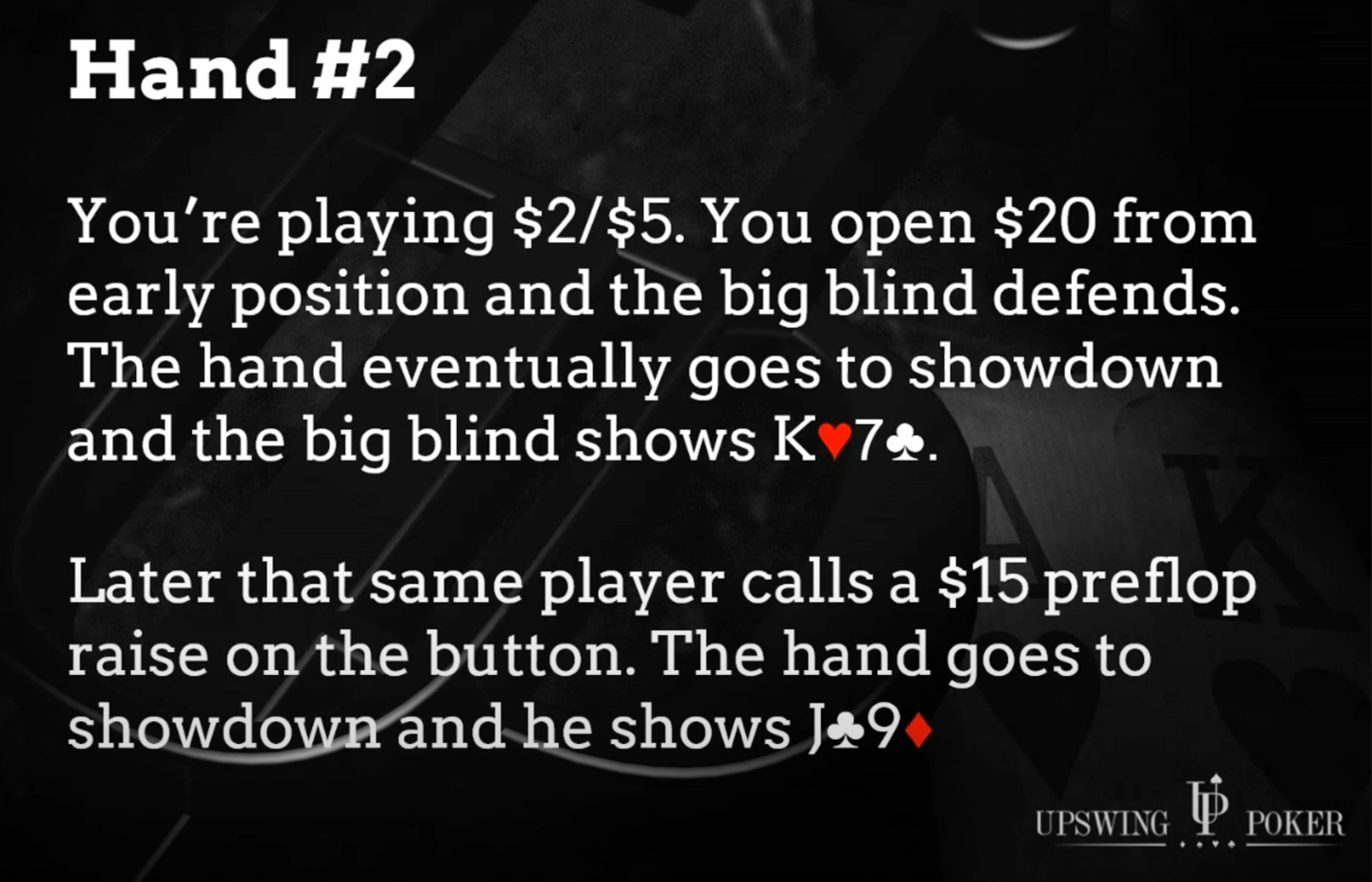 Time for hand number two. You're back in that NL2-NL5 game, and you raise preflop to $20 from early position. The big blind defends and eventually shows down