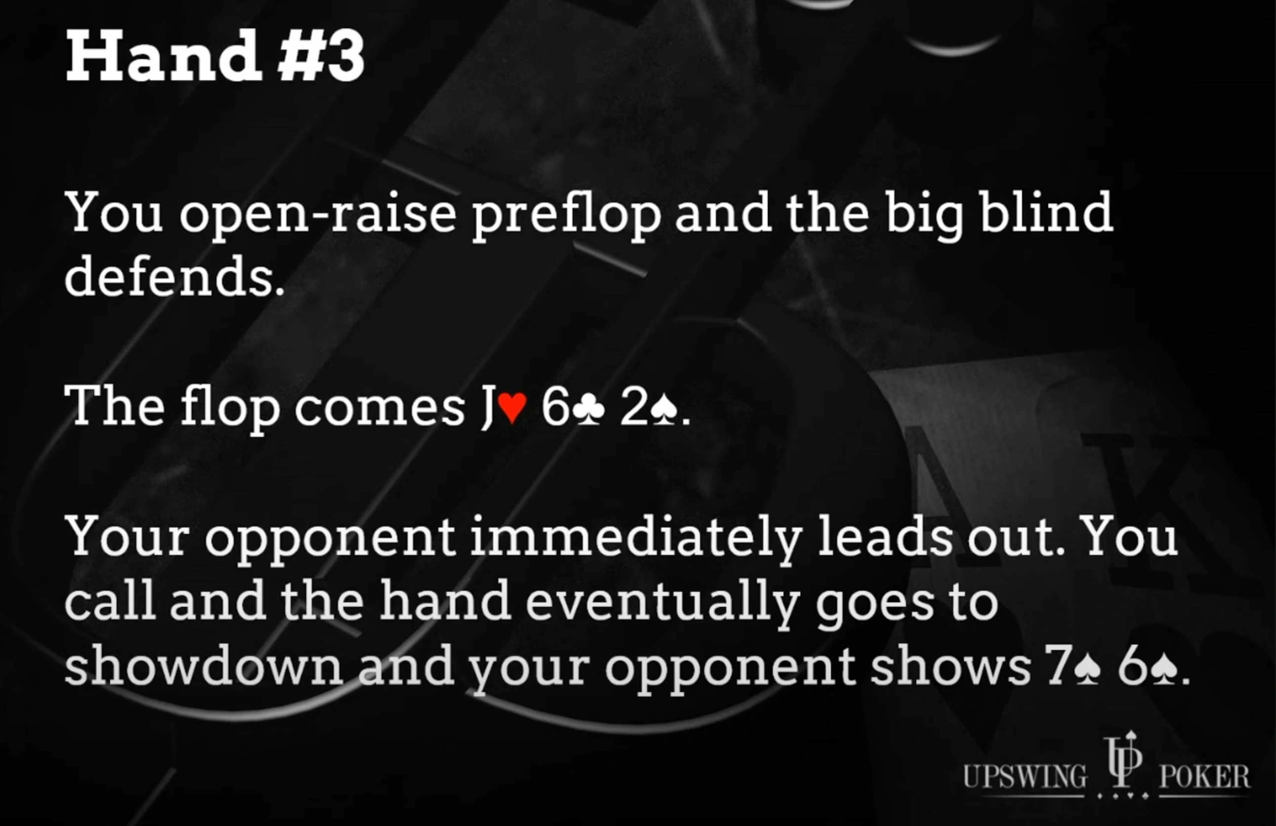 Moving on to hand number three — let’s talk about donkers. Suppose you raise preflop, the big blind calls, and the flop comes a