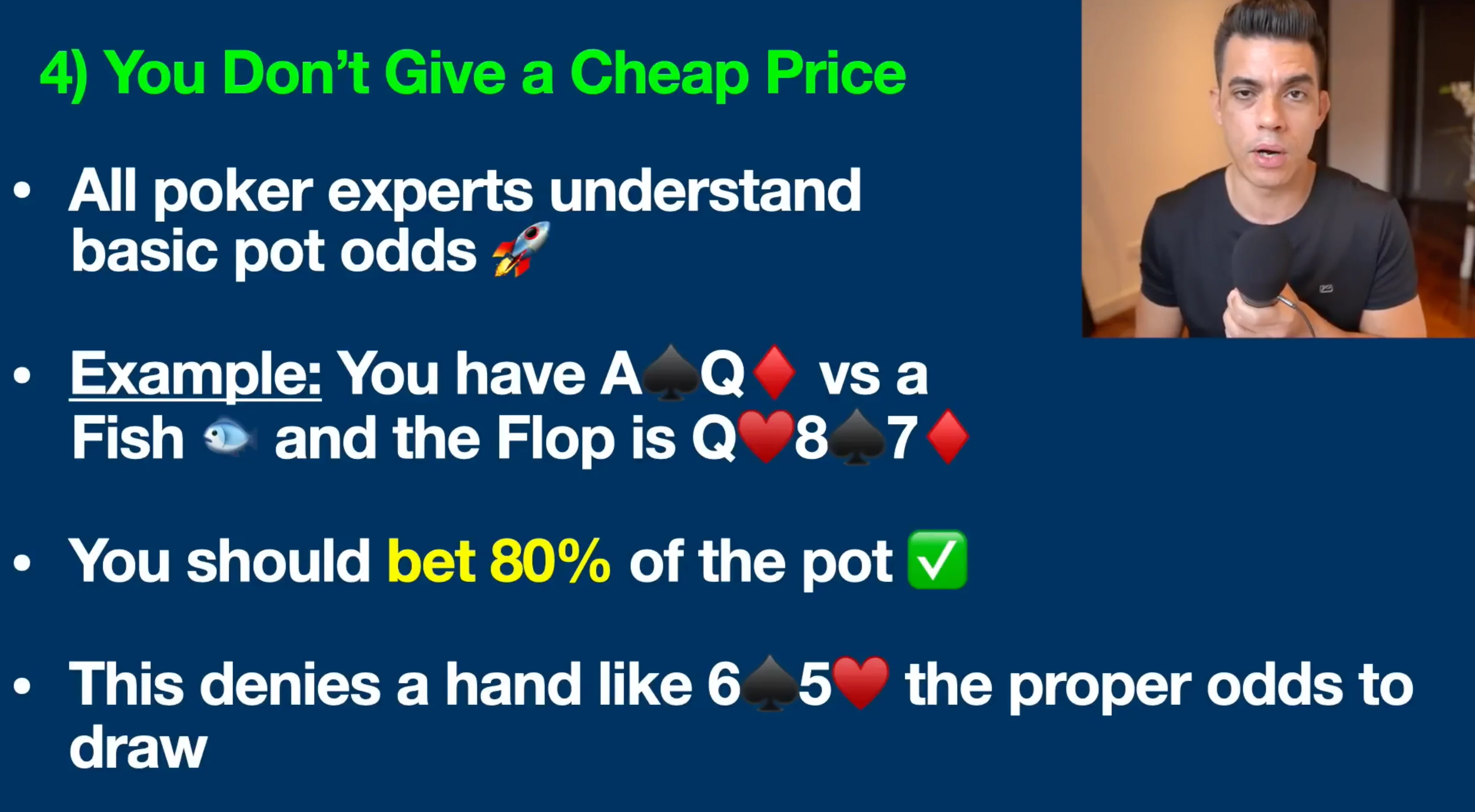 The fourth way to tell if you are good at poker is you don't give them a cheap price. Guys, all poker experts understand basic pot odds. Let me give you an example once again: