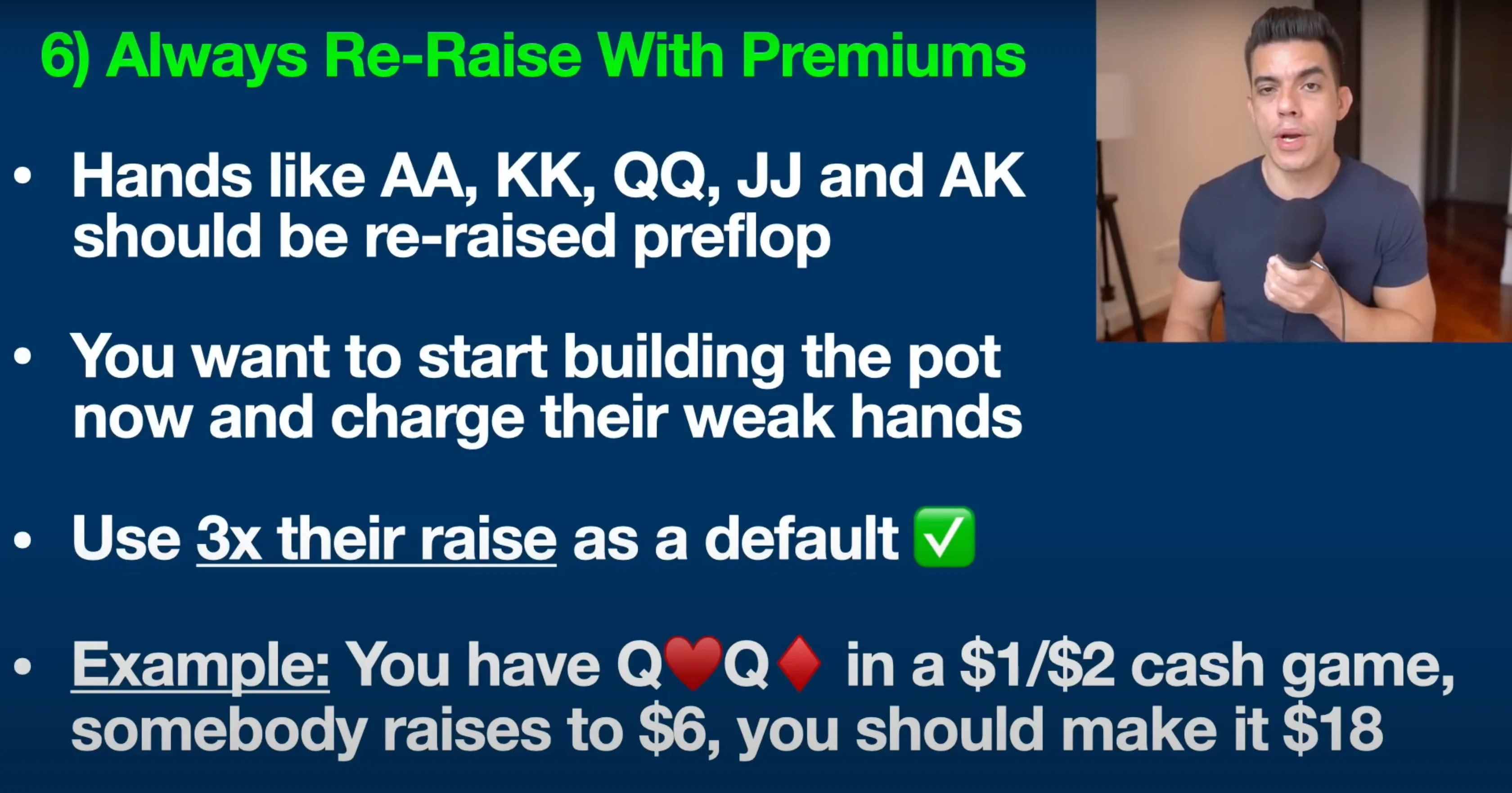 Next up: always re-raise with your premium hands. What are they? Premium hands are: