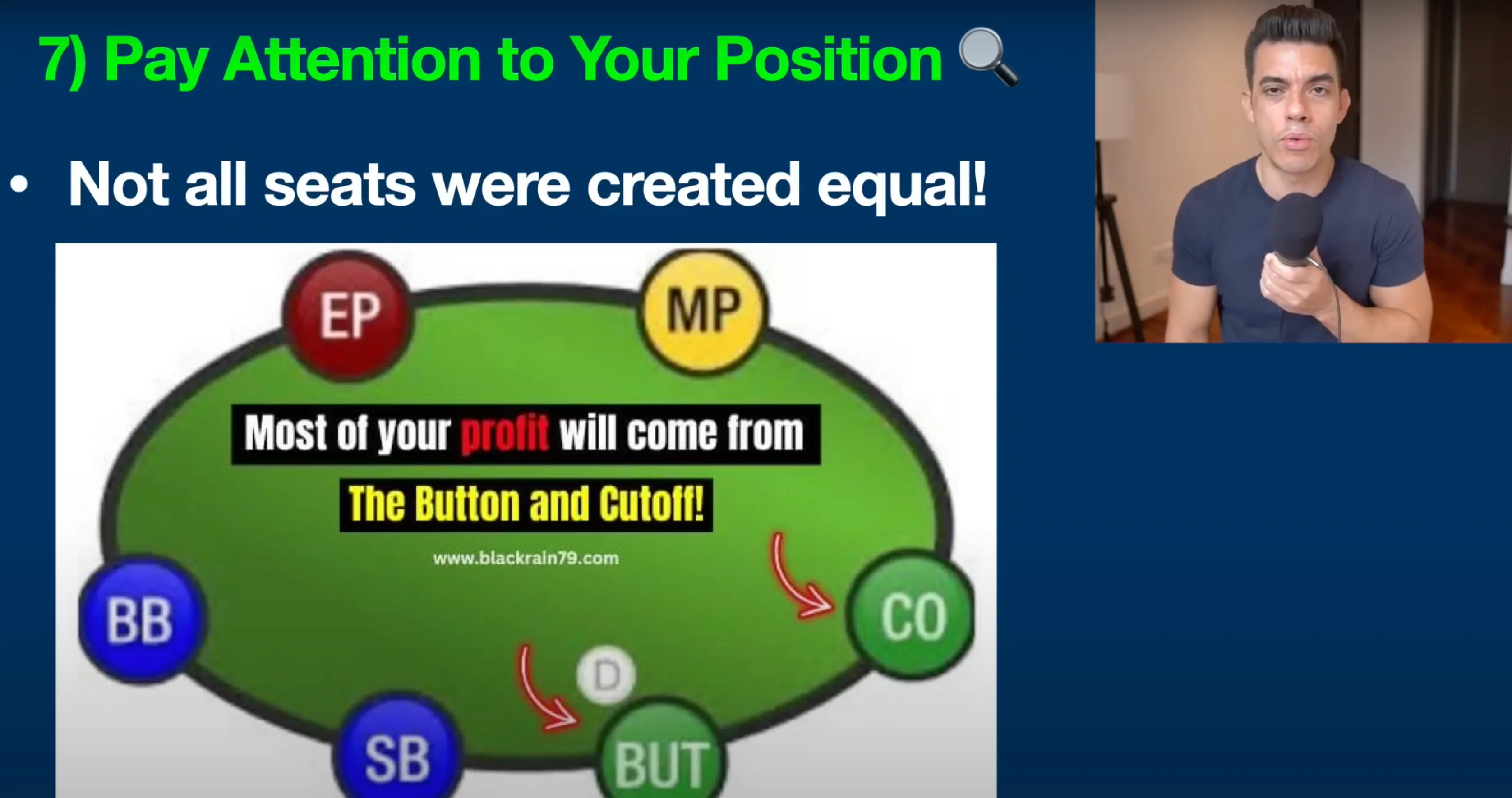 I've just put the image on your screen so you can see that the button and the cutoff are by far the most profitable seats. Why? Because you get to act last on the flop, turn, and river, which is a massively proven statistical advantage.