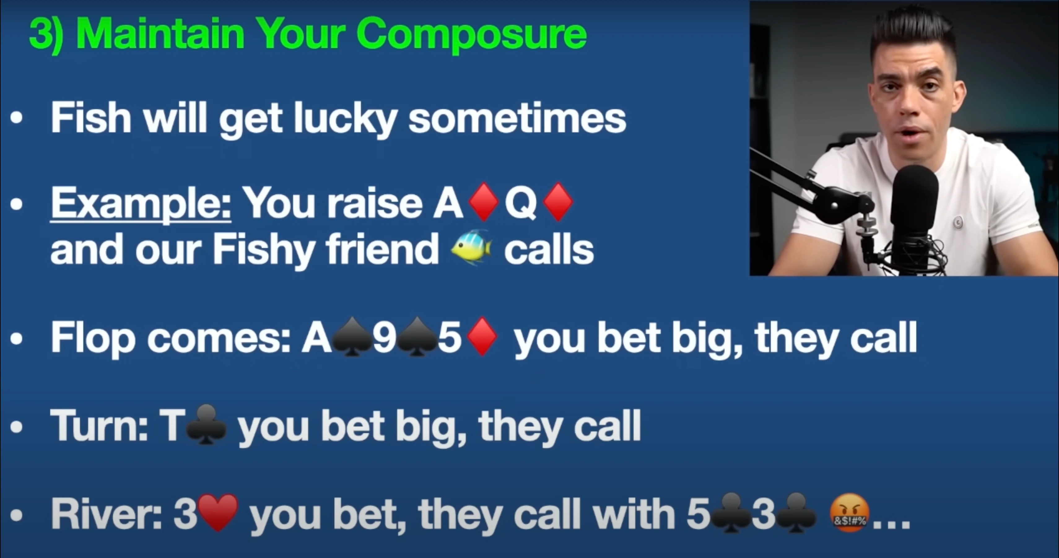 Guys, before you fly off the handle, before you go Phil Hellmuth on them, you need to understand that this is a vital aspect of the game. Fish are going to get lucky. Sometimes they're going to hit their 10%, their 15%, their 20% chance to get lucky.