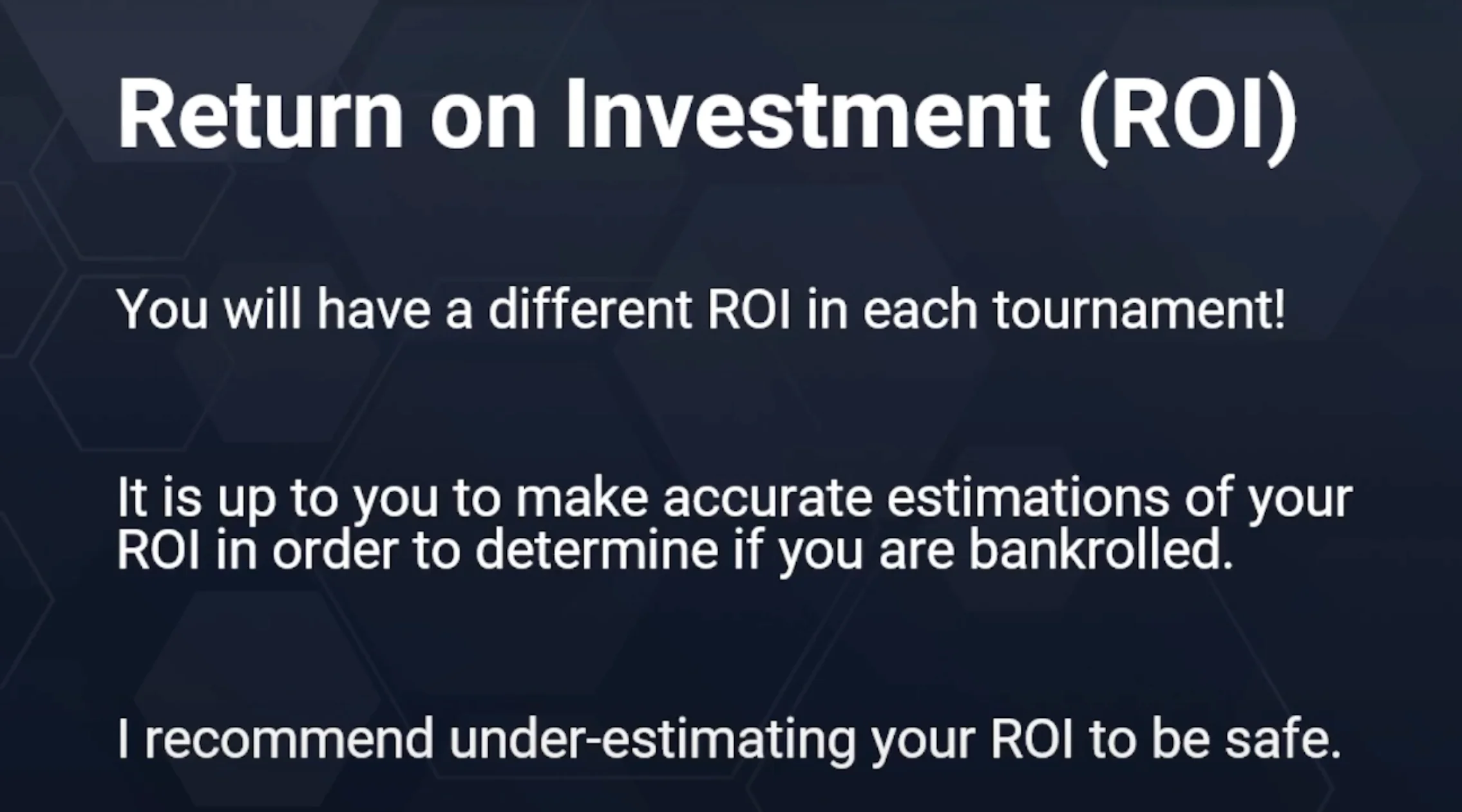 First, you need to know your return on investment (ROI) when you play a tournament. Your ROI is the average amount you make per tournament. How do you calculate this? Your ROI is your profit divided by your buy-in.