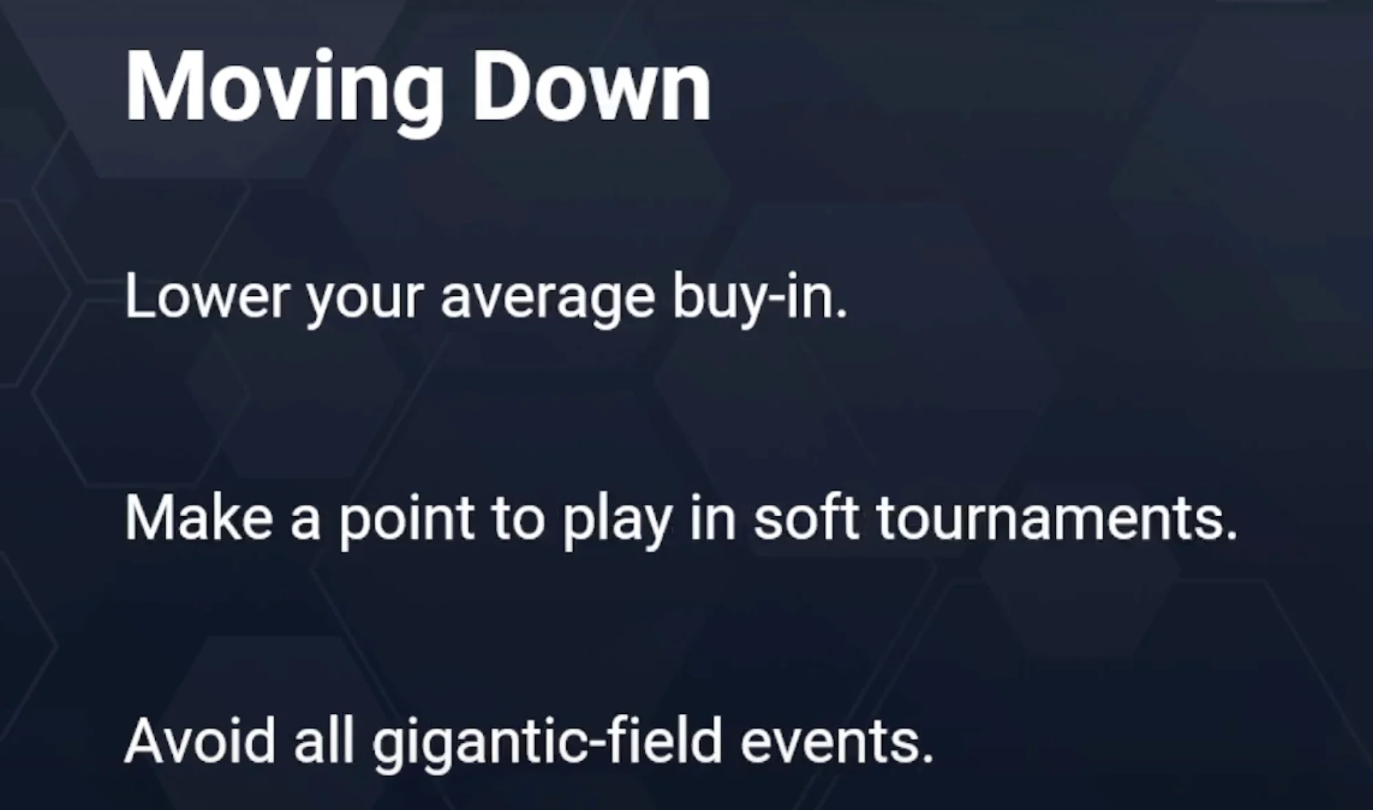 In summary, moving up in stakes should be done cautiously, focusing on gradually increasing your buy-ins during opportune, softer tournament periods. Resist the urge to chase big scores in high-variance environments and instead build your bankroll steadily over time.