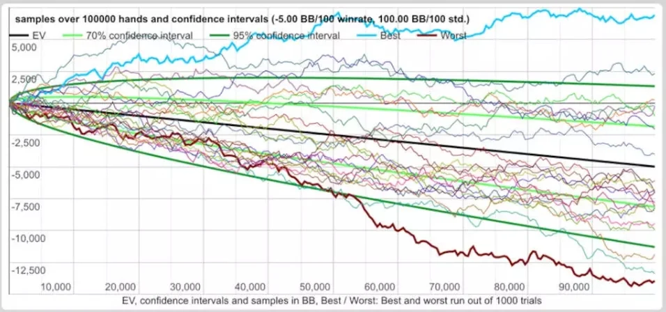 Here are a few variance graphs that show how big of a role luck plays in cash poker: