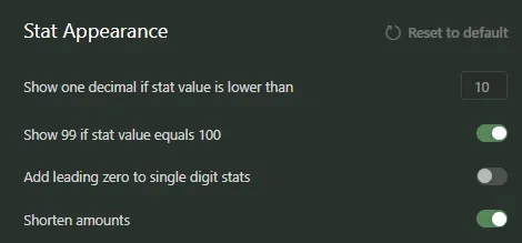 - Show 99 if stat value equals 100 - instead of "100%", "99%" will be displayed to save space. This replacement visually "compresses" the HUD, making it more compact. This is especially useful if you want to reduce the space allocated for the HUD.