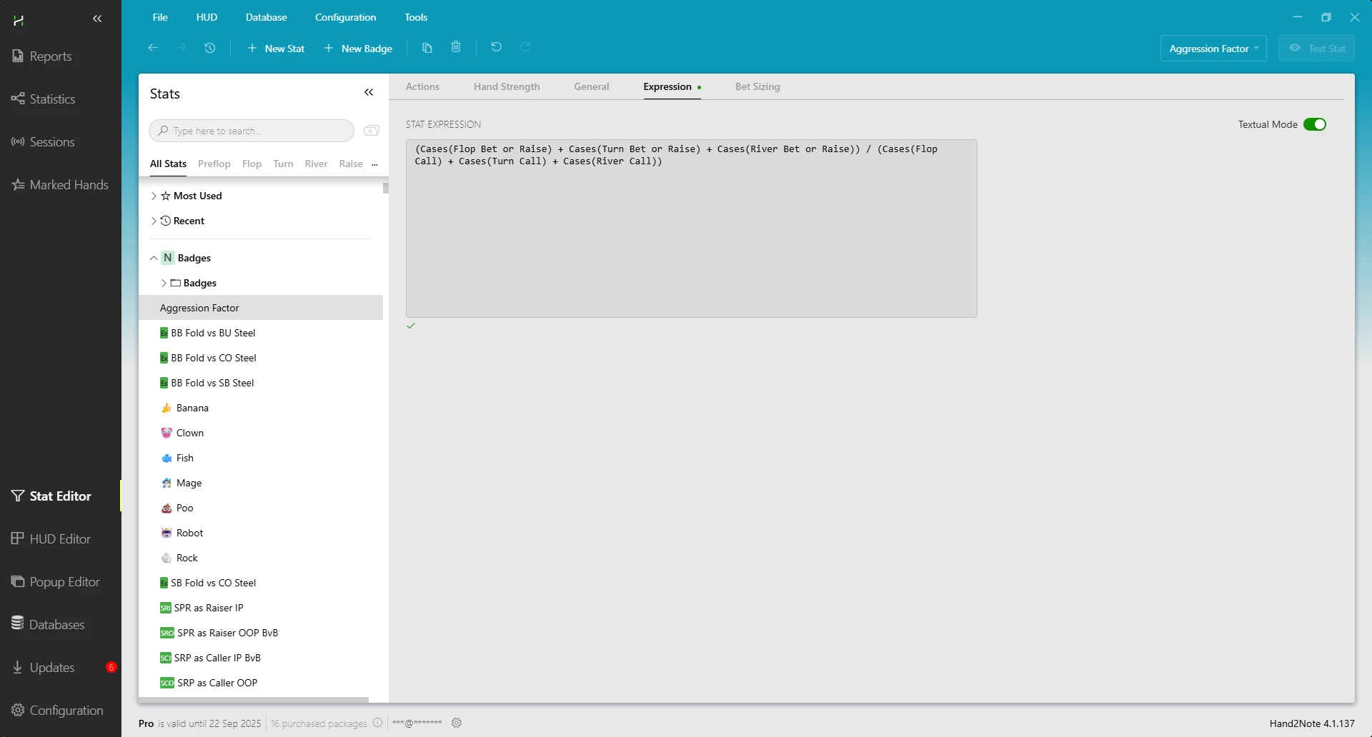 Go to Stats Editor. Click Create New Stat and enter a name, e.g. Aggression Factor. Then switch to the Expressions tab.