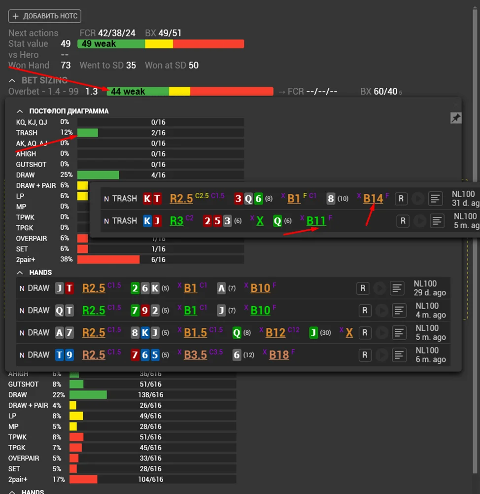 - You also need to look for these hands in the opponent's pop-ups in real time to understand their logic. The number of samples will certainly be much less but often a couple of hands are enough to realize the opponent's tendencies: