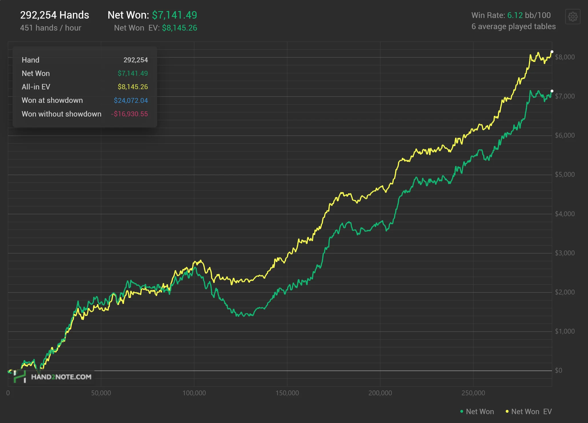 For cash games, we would recommend a distance of at least 200,000 hands. Until you have reached this milestone, it is better to focus on your development as a player.
