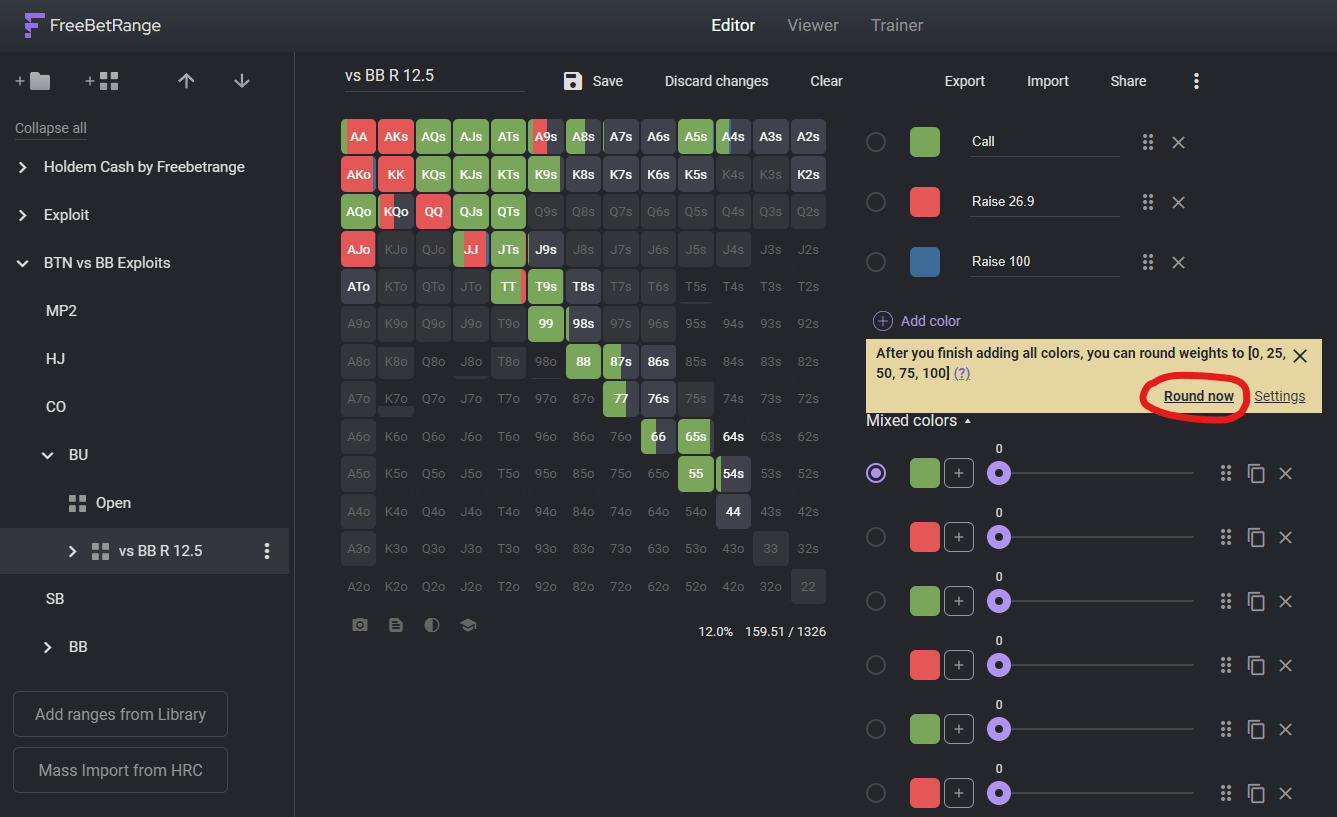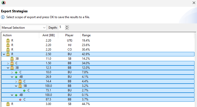 Then we select the nodes we want to have in FreeBetRange (those will the BTN’s and the BB’s strategies in this example).