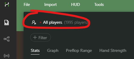 In Hand2Note, you want to filter your stats for specific positions and spots so that you can see the ranges that your player pool actually plays. One way to do that is to go to the “Reports” tab. There, you want to click on the field on the top left, which is the player field.