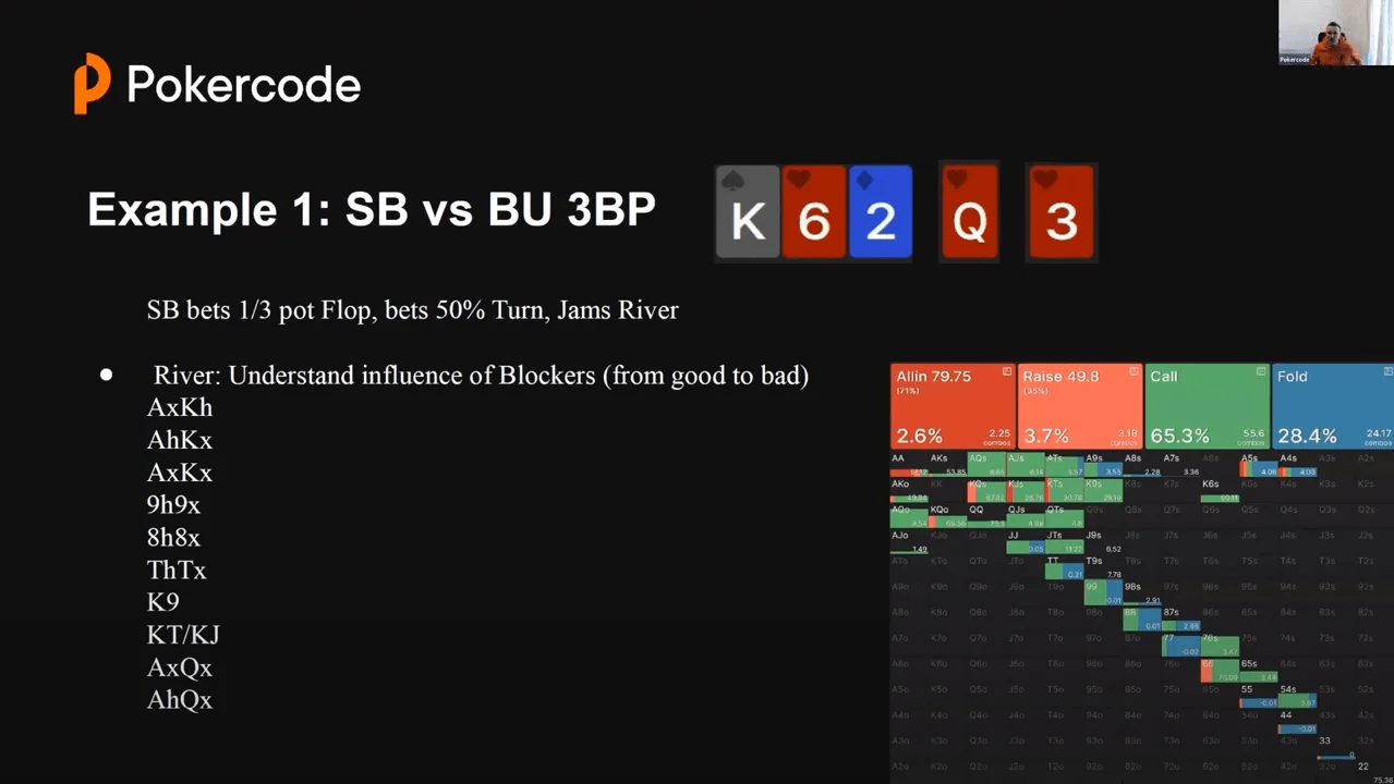 On the river, the situation often changes, and now the most important thing for us is the quality of our blockers: which cards are good and which are bad - and by how much.