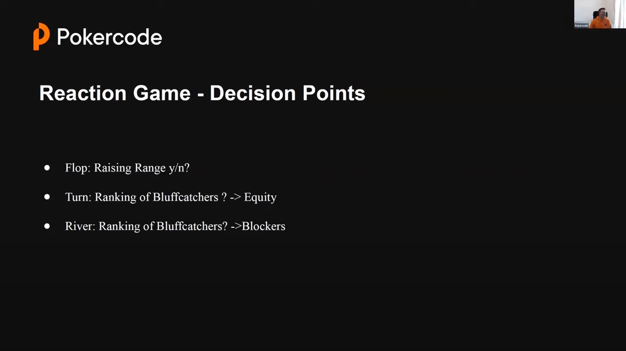 - In a reaction game, focus on the live equity of your hands
