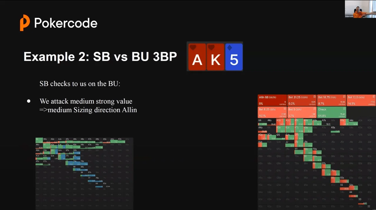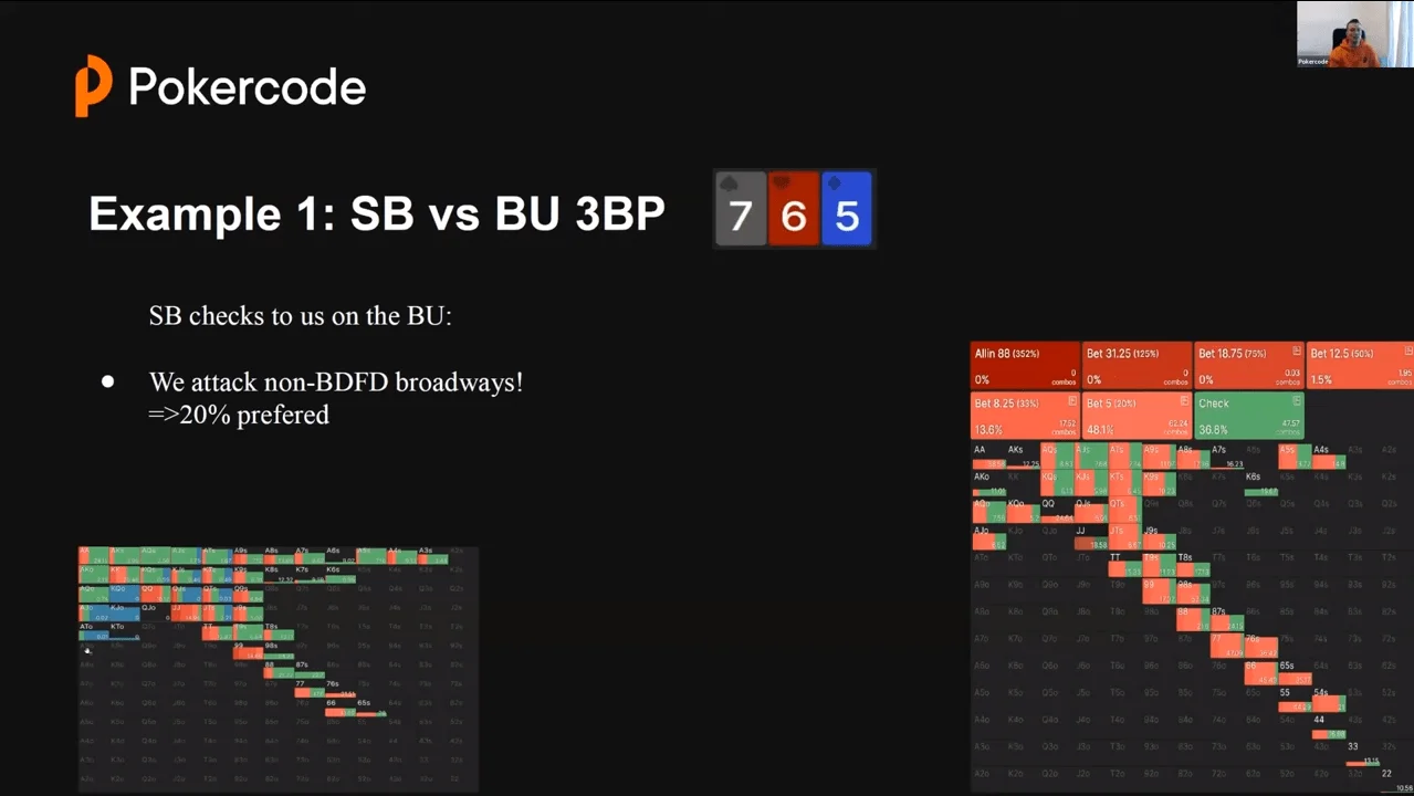Example of a hand and a train of thought: 3-bet pot BU vs SB => The opponent barrels