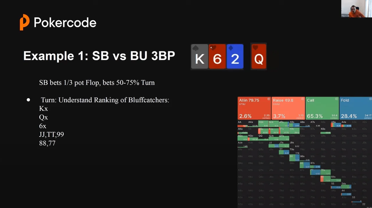 - Turn: assess the rank of the bluff catcher by his equity,