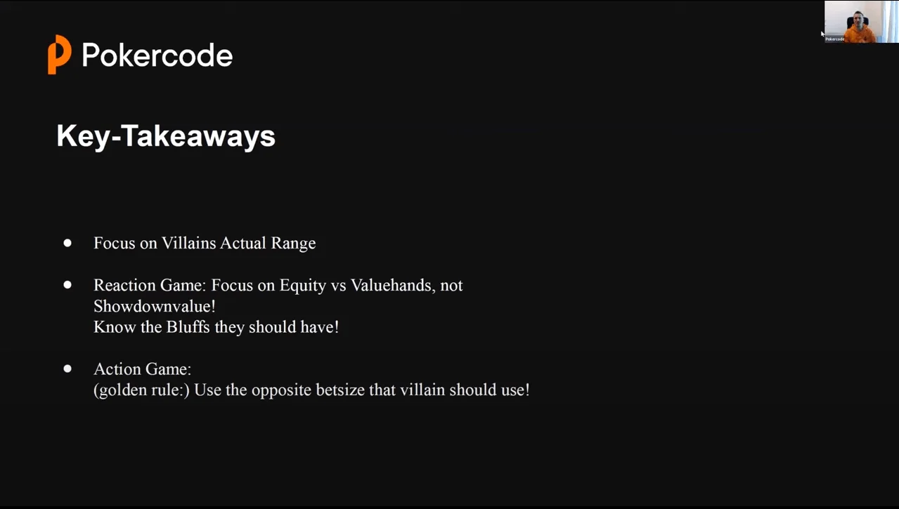 - It is very important that Hero thinks about the real range of the opponent, and not about the solver