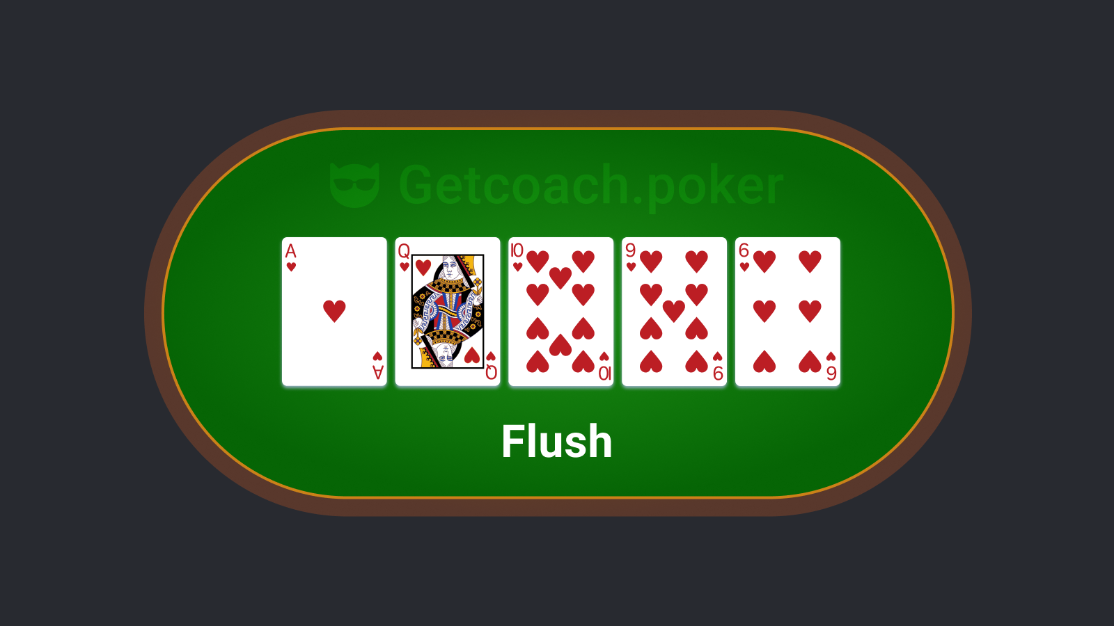 A flush is a set of five cards of the same suit. The cards do not have to be in rank order, otherwise we will get a lot stronger hand.