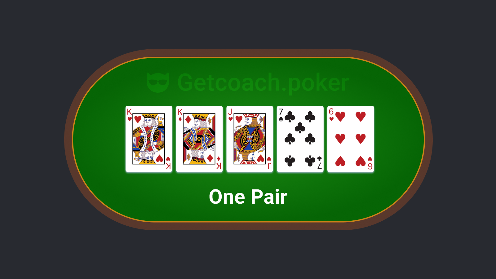 One Pair represents a commonly seen hand in poker, formed from two cards of the same denomination. The probability of getting the combination from preflop to river is approximtely 50%.