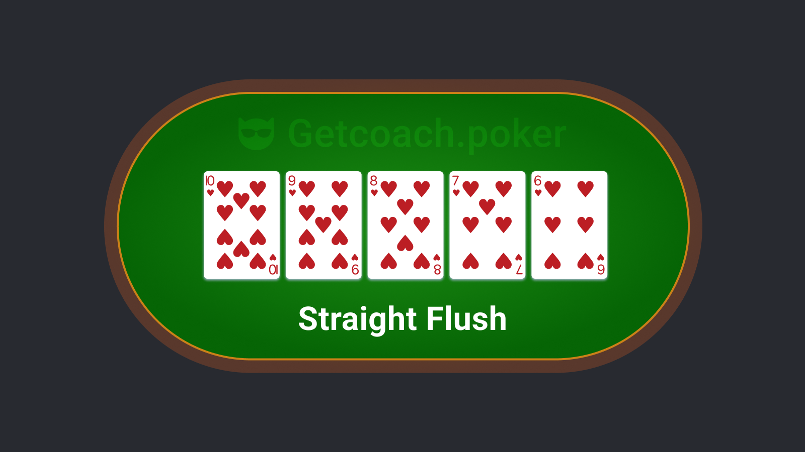 But if, nevertheless, two+ players collect Straight Flush, then the owner of the pot will be determined by the highest card. For example, Straight Flush with the highest card T will beat Straight Flush with the highest card 6.