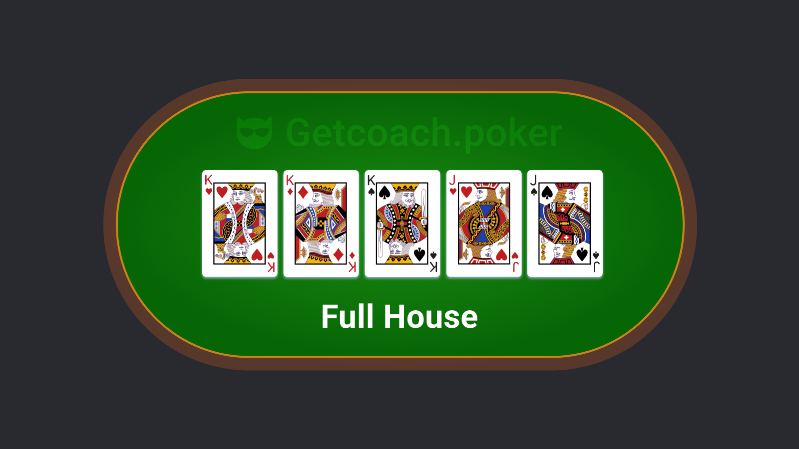 A Full House is a combination of 3 cards of one rank and 2 of another. In other words, it is a Three of a kind + a Pair. In the vast majority of cases, this combination is a winning one.
