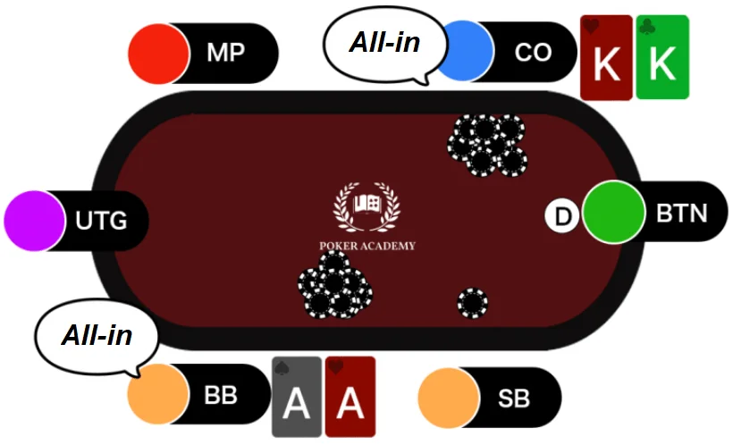 For example, let's say you go all-in with AA, and your opponent has KK, creating a $100 pot.