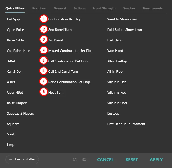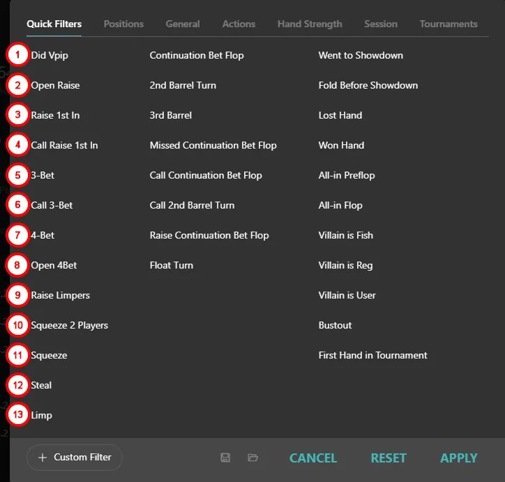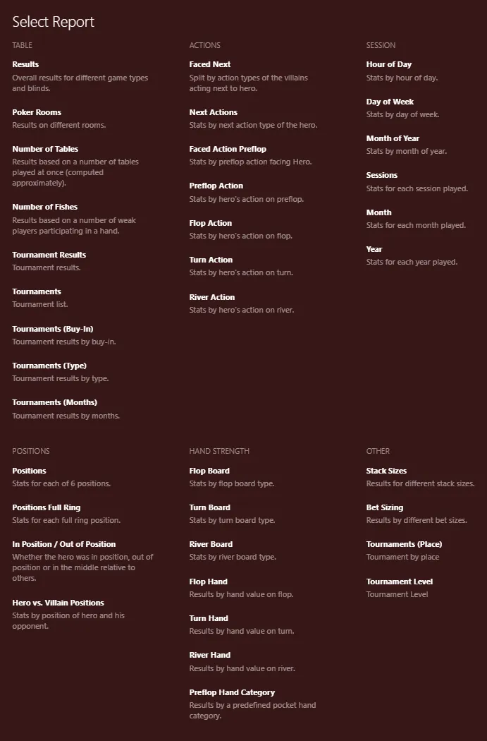 Finally — Hand2Note added descriptions for each report. It’s now much easier to navigate. And just imagine: you can combine these with previous filters from earlier in the article and analyze your database in ways never possible before.