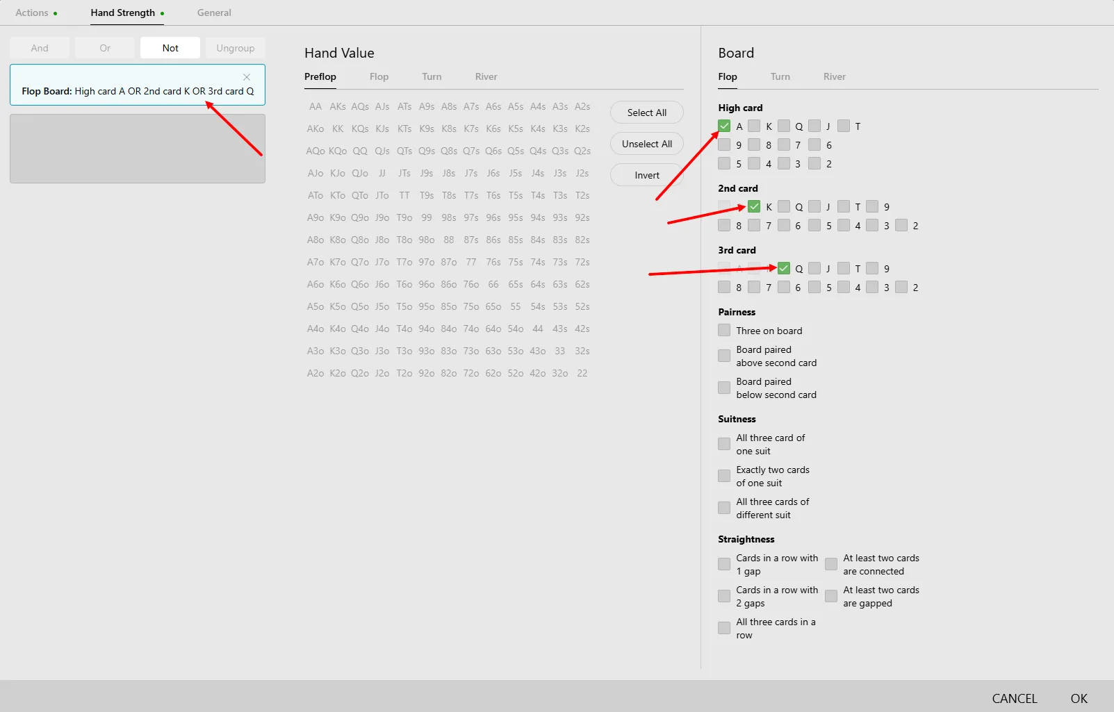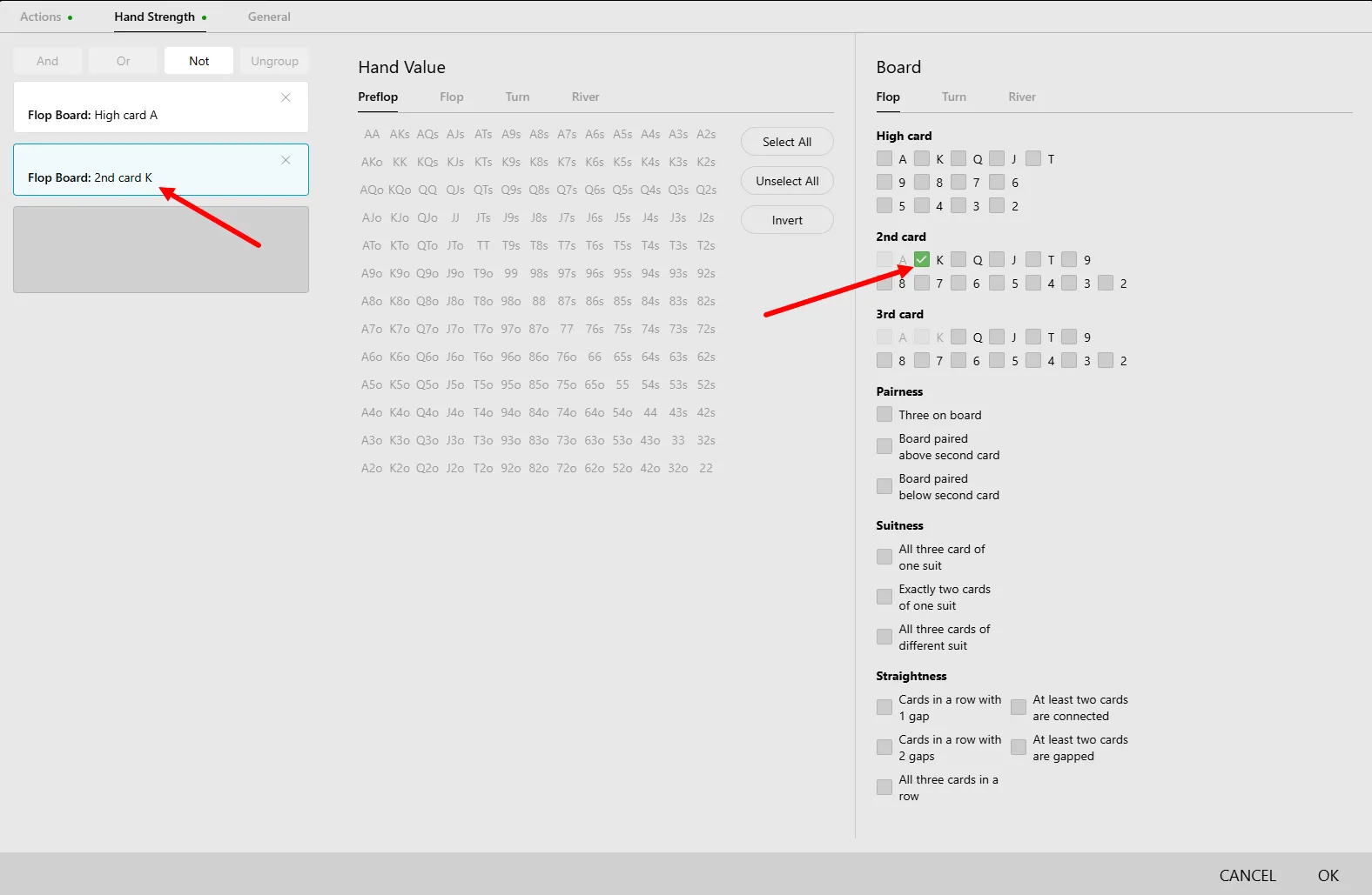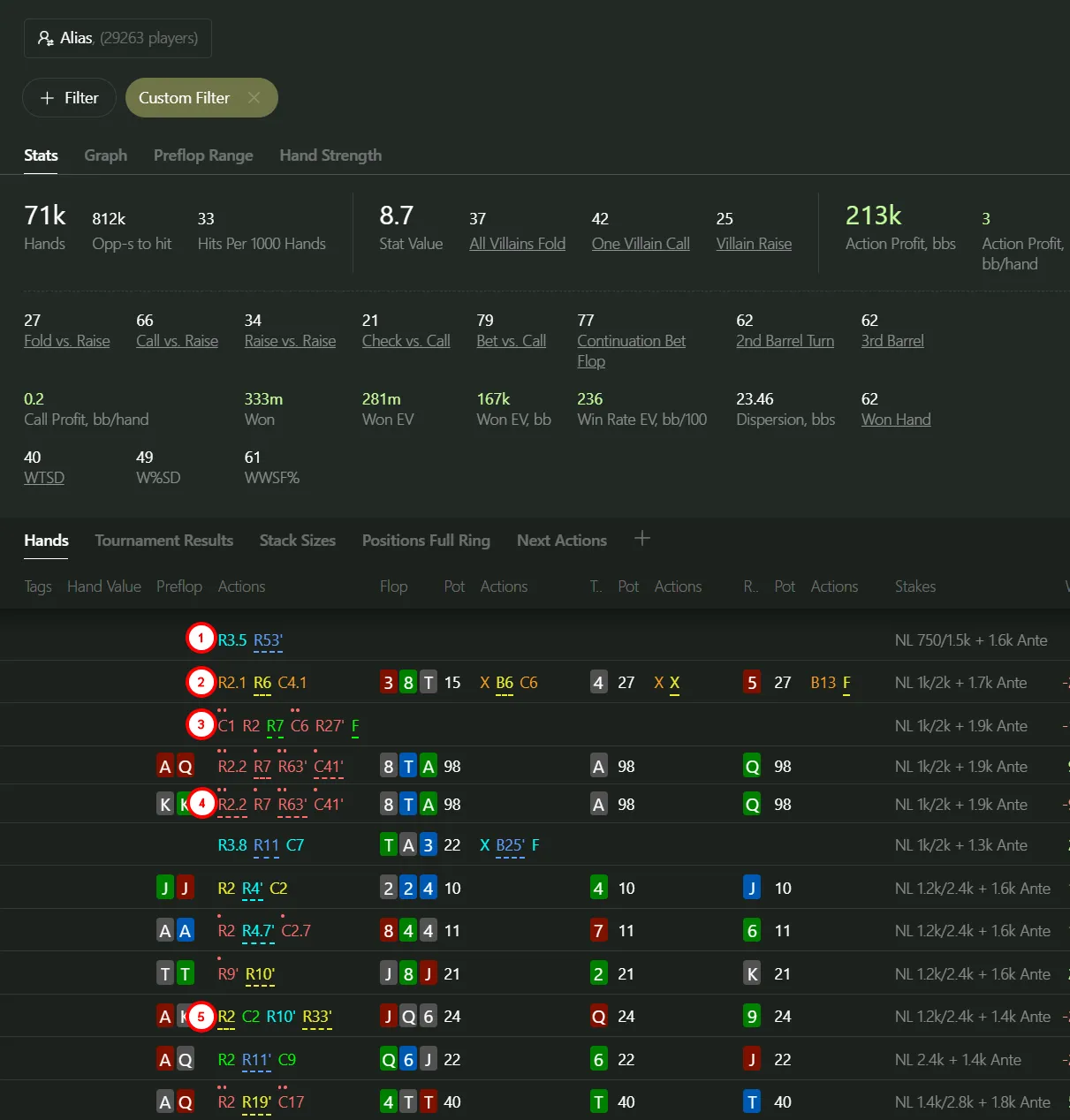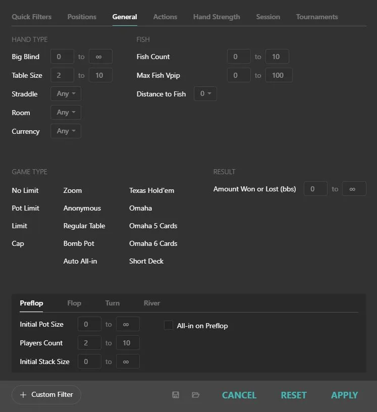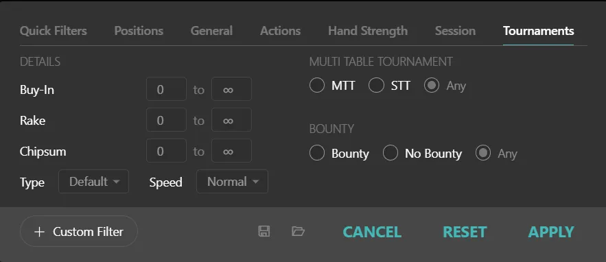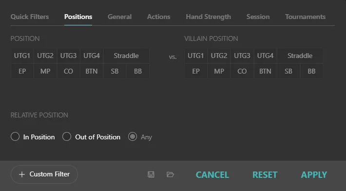 As I mentioned earlier, using this inside the “+ Filter” → “Hand Strength Tab” is clunky.