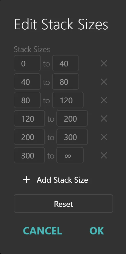 Stack Sizes — filters hands by the actual stack size of the player