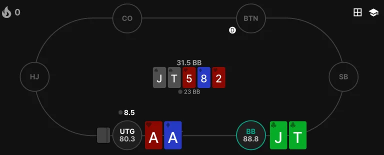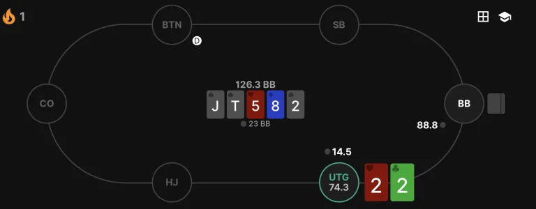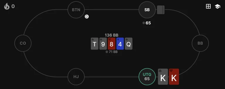 Your opponents are humans, and the correct answer changes all the time. However, poker is also a game of how to avoid mistakes. By minimizing your own mistakes and attacking your opponent's mistakes when you spot them, you will be able to win more!