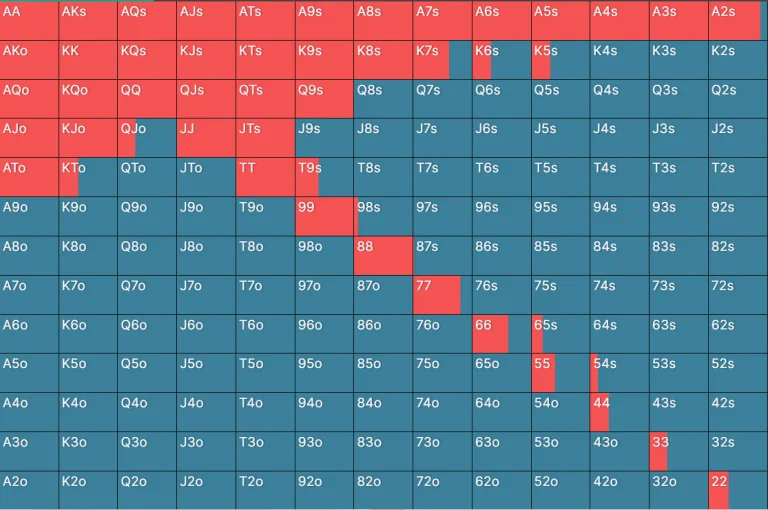 When the player on the BTN folds too frequently, it's advisable to widen your stealing range. For example, if you usually steal with the following default range: