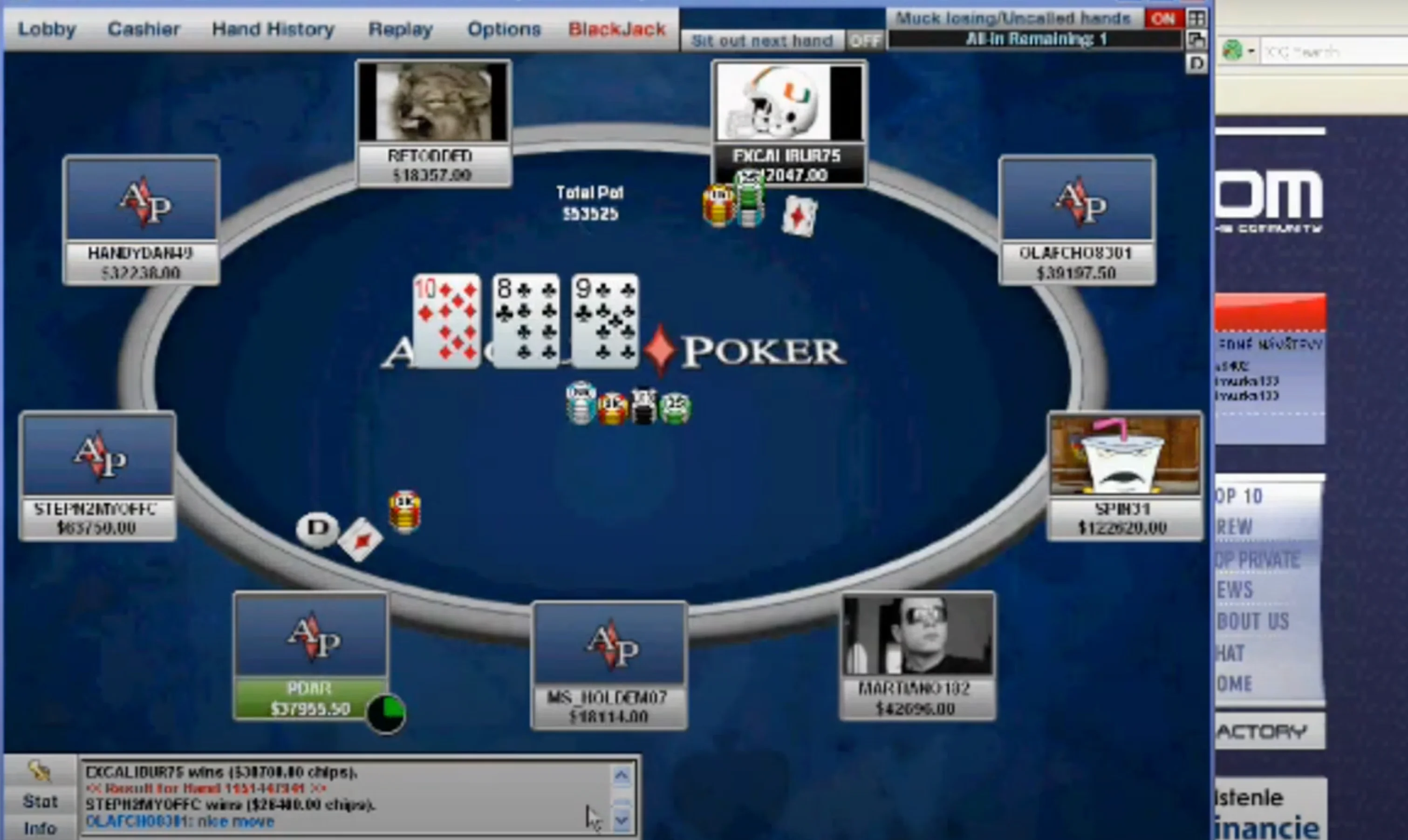 One such test account, known as «number 363», could see the hole cards at any table. This account was only used for development purposes to verify that pots were distributed correctly and could not be used to play in real money games. Given that this was one of the first accounts ever opened on Absolute Poker, it is likely that the person in control of this account had close ties to the company.