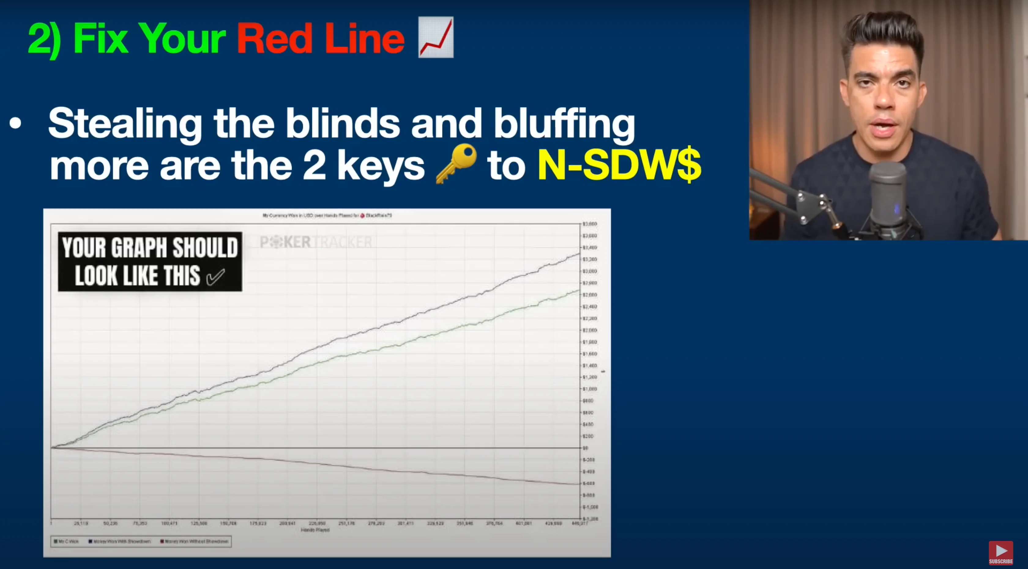 Alright guys, let's move on to strategy number two for serious poker players: fixing your red line. I’ve never discussed this on the channel before, so let me explain what red line means in poker. Red line is essentially your non-showdown winnings — the amount of money you win when nobody has to show their cards.