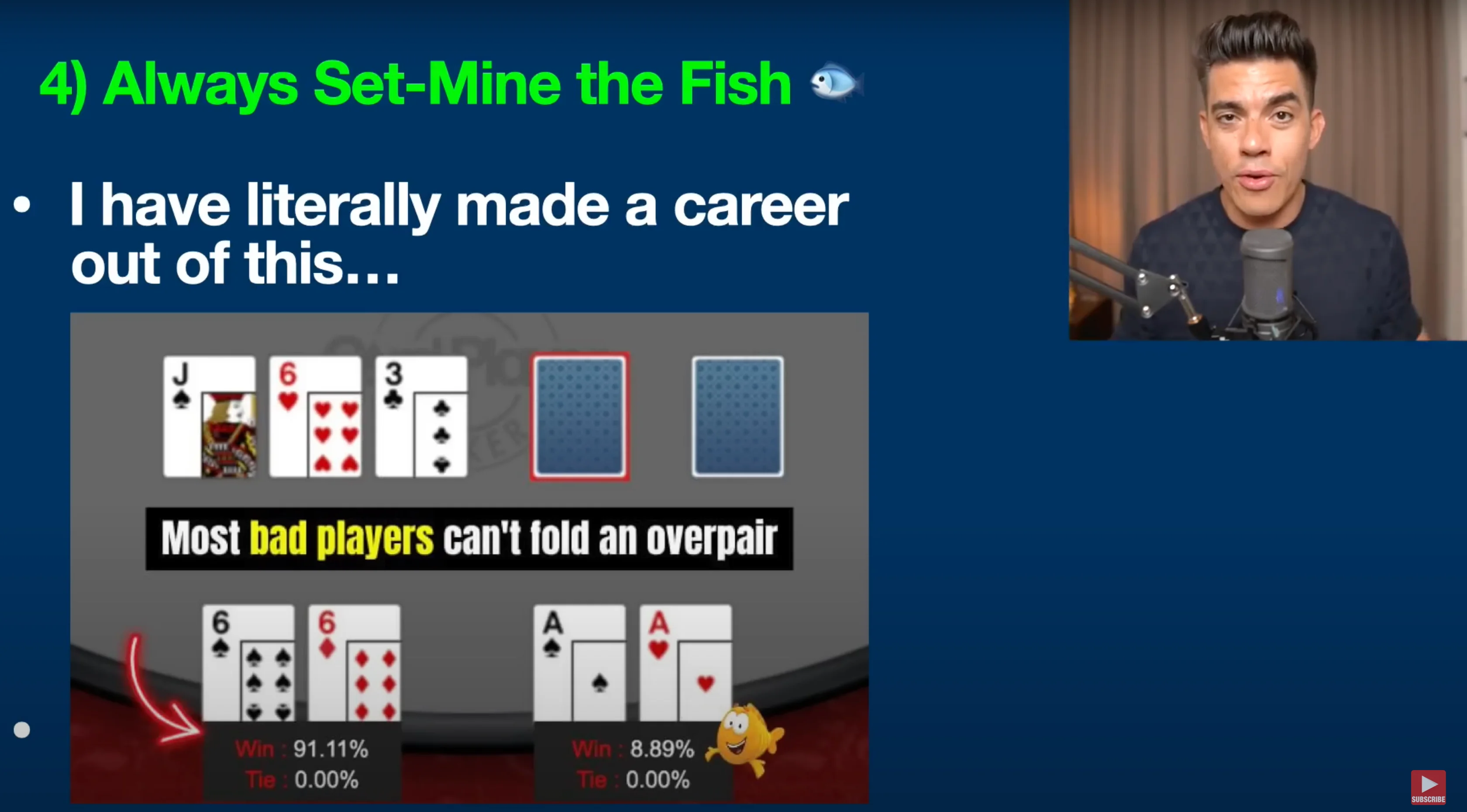 Alright guys, moving on to strategy number four that all serious poker players need to know: always set the fish. We just talked about fishy players limping, so now let's discuss what to do after the flop against them. The number one thing I can tell you is that I’ve literally made a career out of playing small baby pocket pairs, like pocket sixes, and hitting a set against fish.