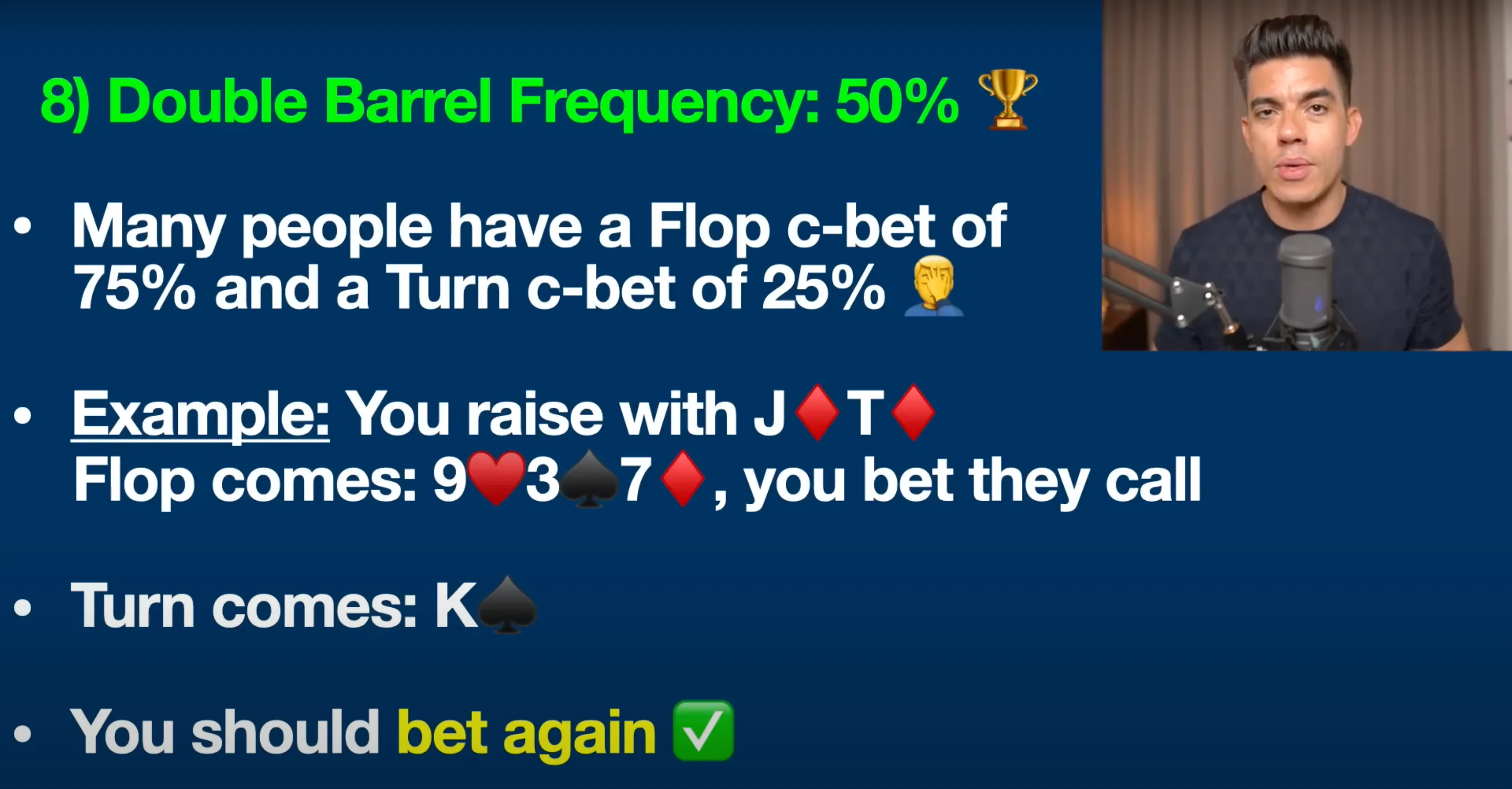 This time, we're going to discuss double barrel frequency. A double barrel is when you raise the preflop, bet the flop, and then bet the turn.