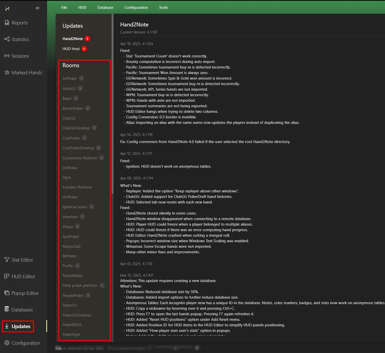 The number of poker rooms where Hand2Note 4.1 can operate (i.e. where the HUD works and hand histories can be imported) is significantly higher than in the previous version of the tracker.