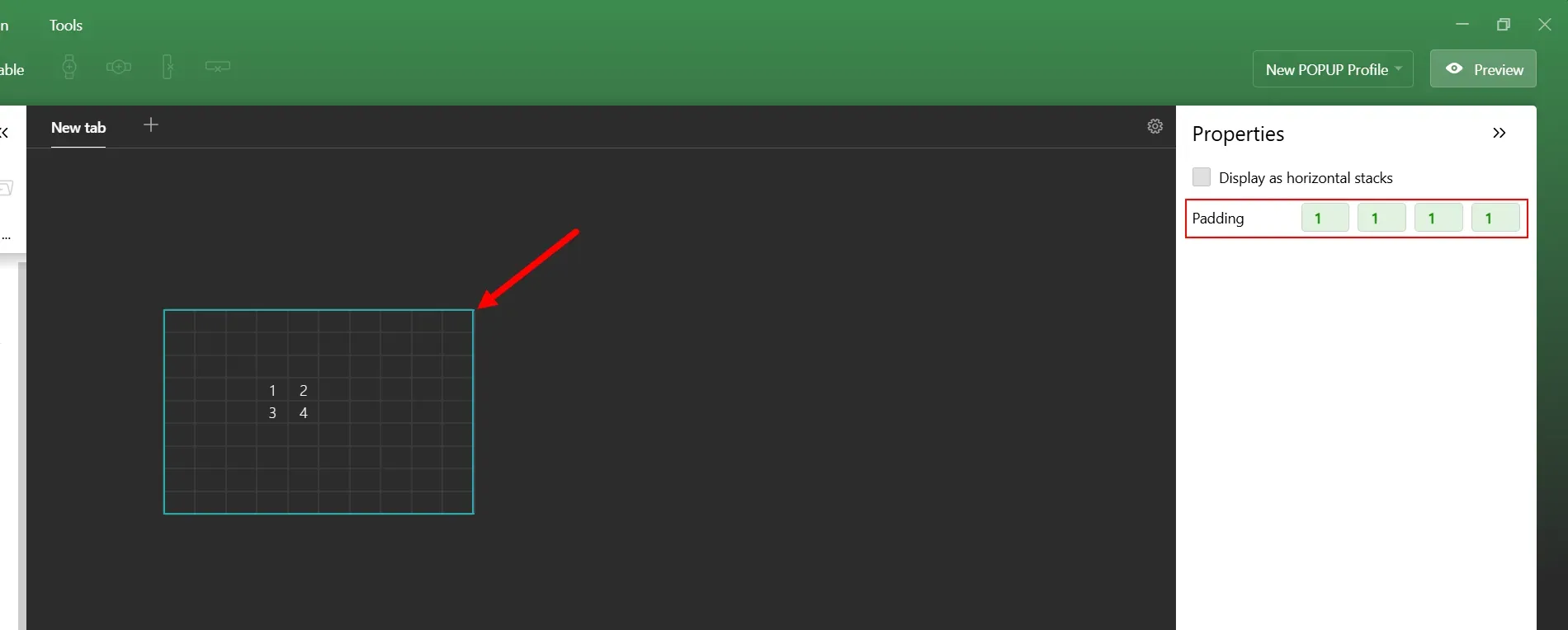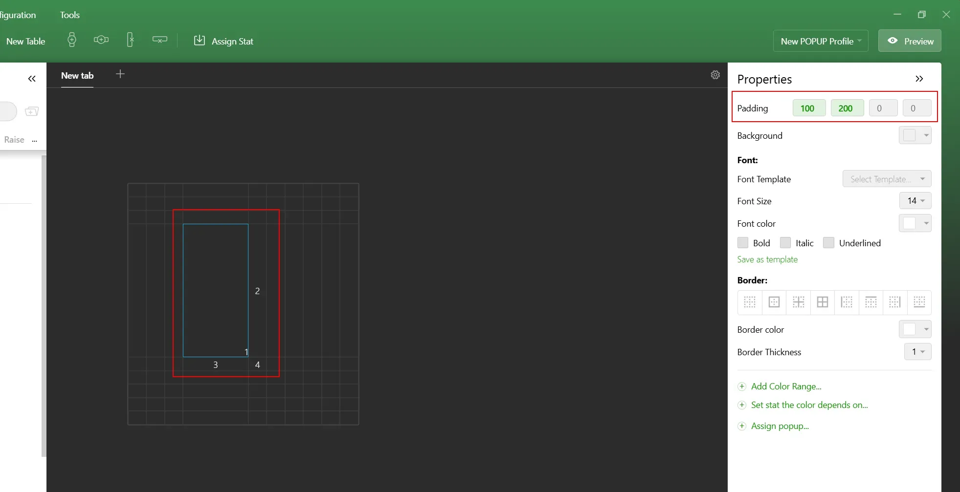Padding refers to the pixel distance between the edge of a cell and the text or stat inside - or, if you want to get technical, it's basically the gap between the centers of two cells. Each padding setting includes four values: