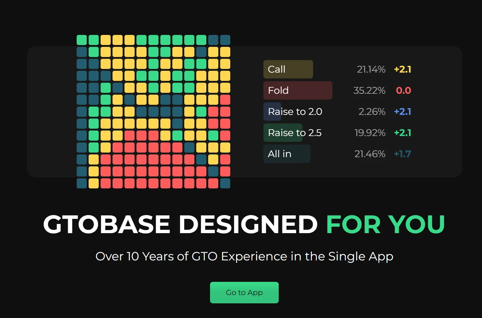 GTOBase covers both preflop and postflop strategies, offering a structured and efficient way to study complex scenarios without the need for high-end computing power. Whether you're fine-tuning your bet sizing, analyzing multi-street decisions, or exploring mixed strategies, GTOBase provides a streamlined and accessible solution for mastering GTO concepts at the highest level.
