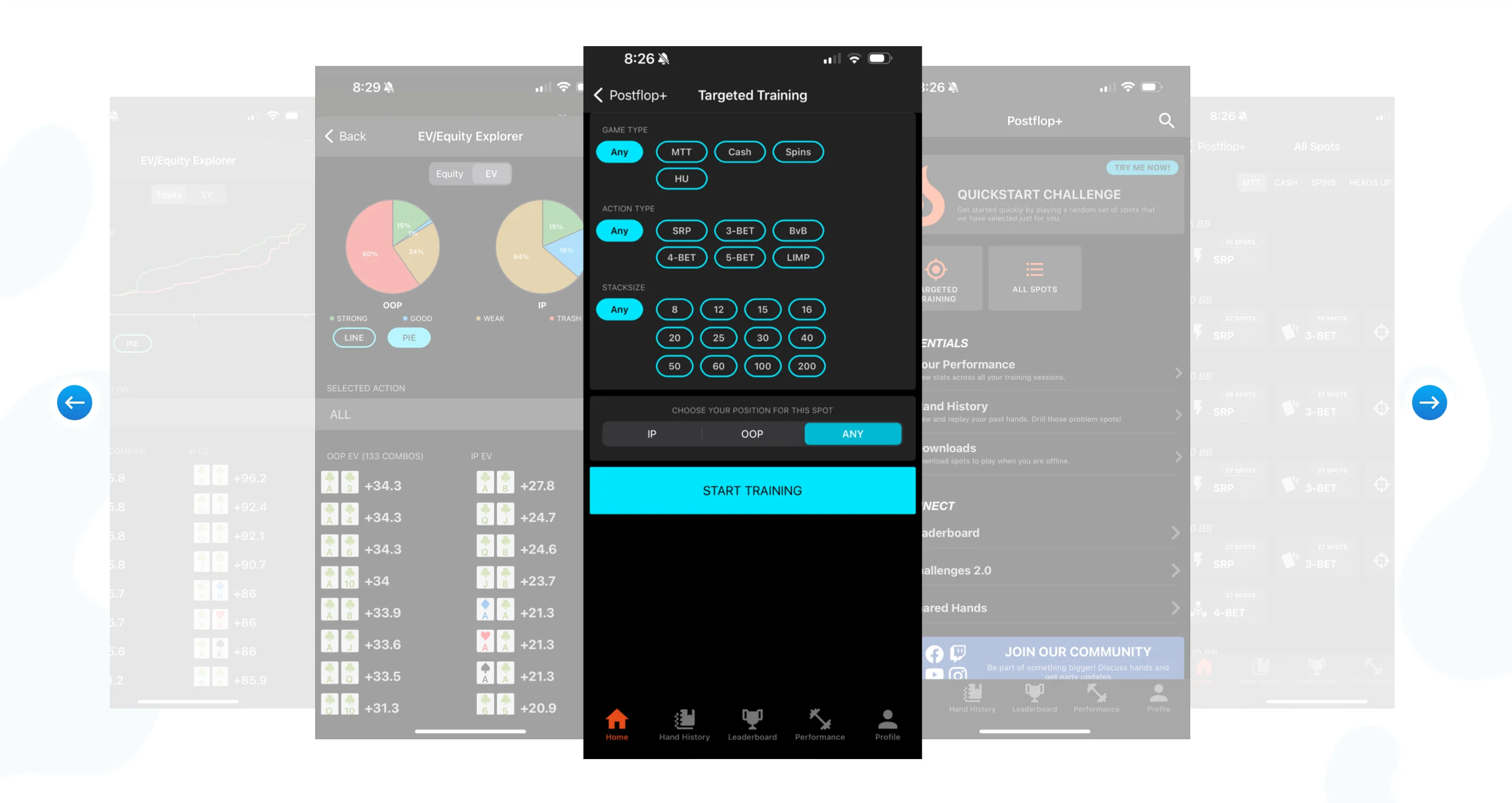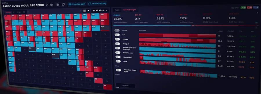 - Customizable Drills: Tailor training sessions based on stack sizes, board textures, and bet sizings.