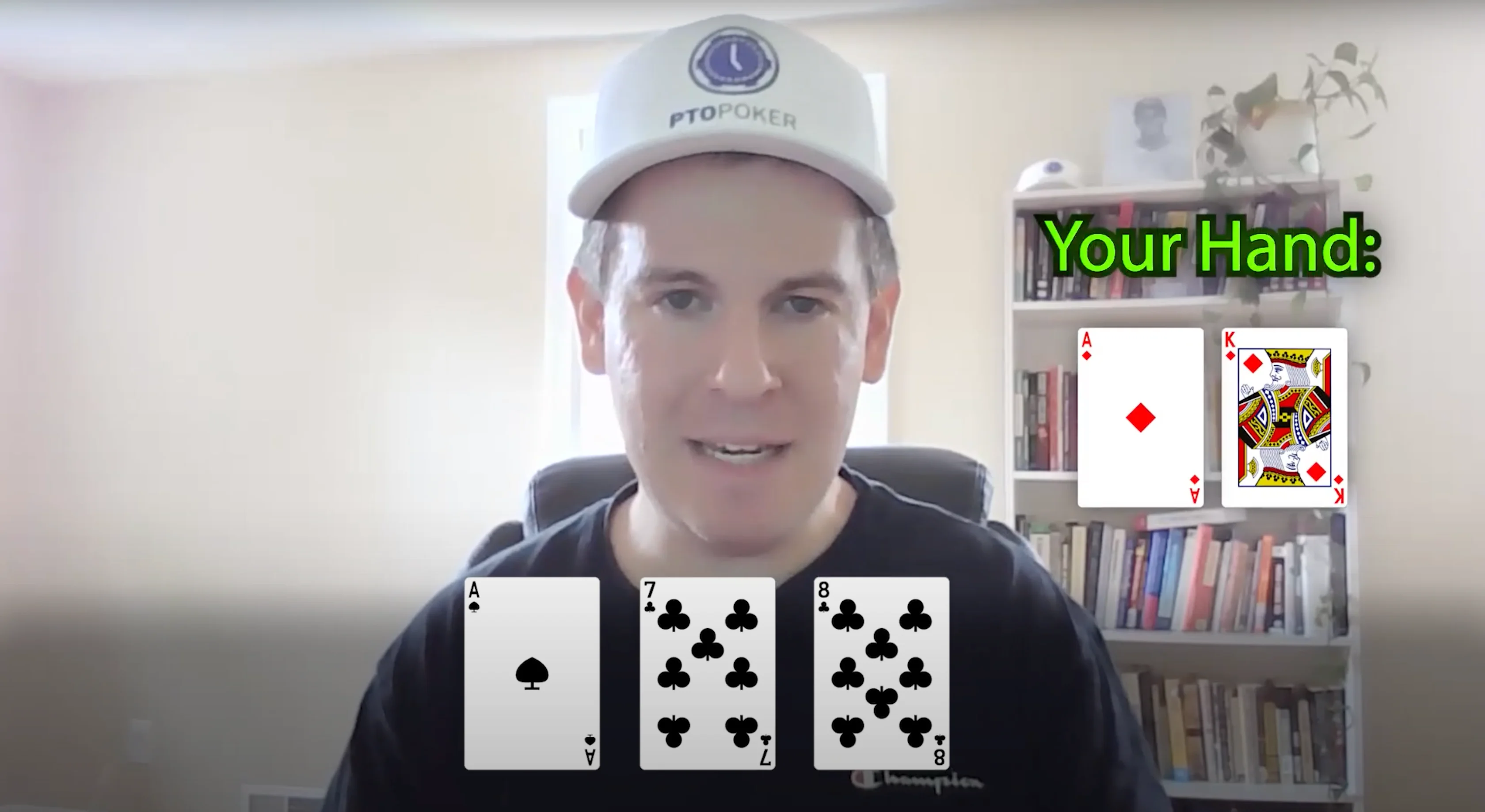 Coming in at number five, we have stopped betting huge in multiway pots. So a lot of players see a board like ace of spades, seven of clubs, eight of clubs, holding a hand like ace king, and their immediate impulse is: «I need to protect my hand».
