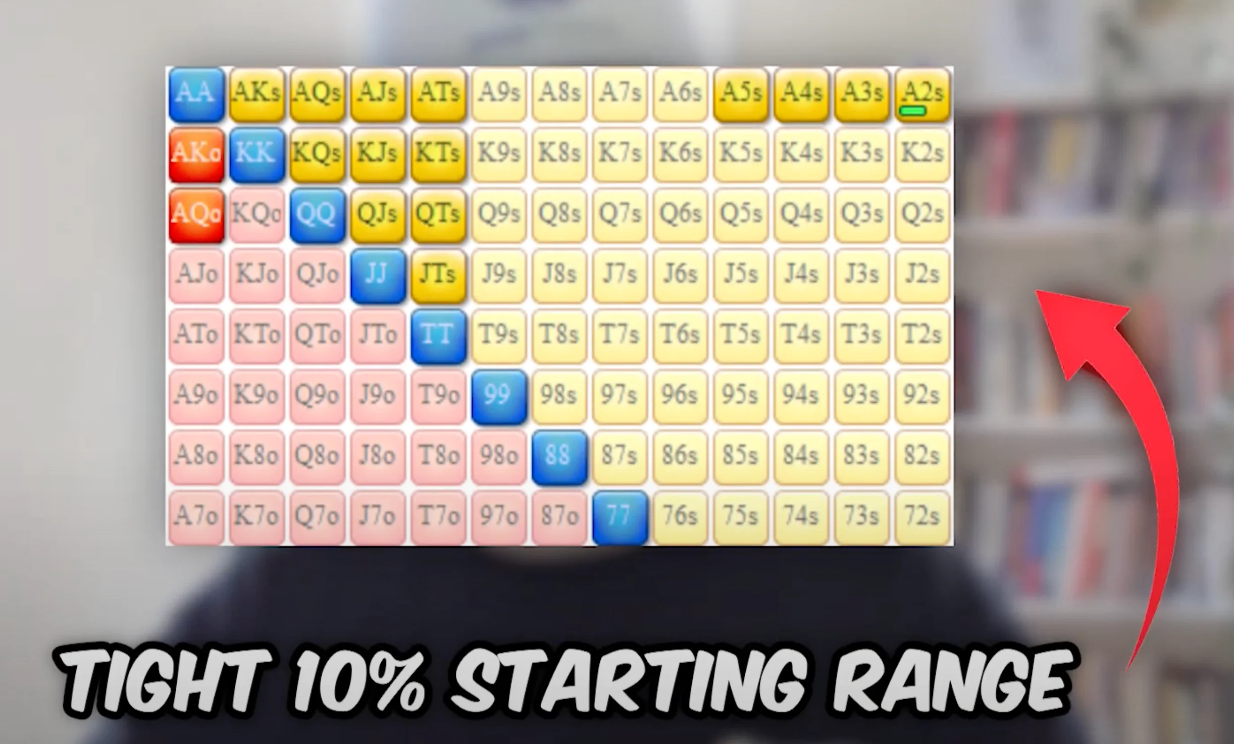 I'll give you an example. Let's say a tight player opens from an early position, and the player is playing roughly 10% of hands, so it's a range that looks like sevens or better.