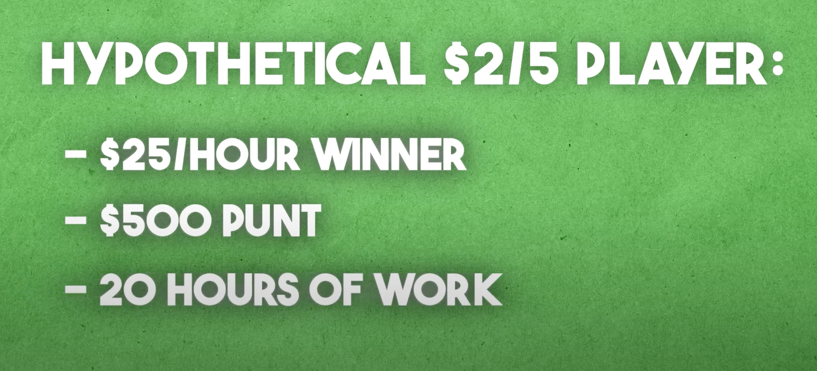 Take a 2-5 player who does this, and say ordinarily they're a $25 an hour winner. Well, say they're down to their last 500 bucks. It's problematic because now we're putting $500 in the middle, which is essentially 20 hours of work. This is a major uphill slog.