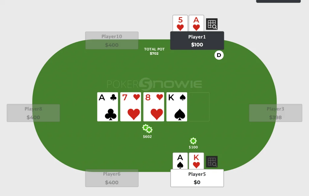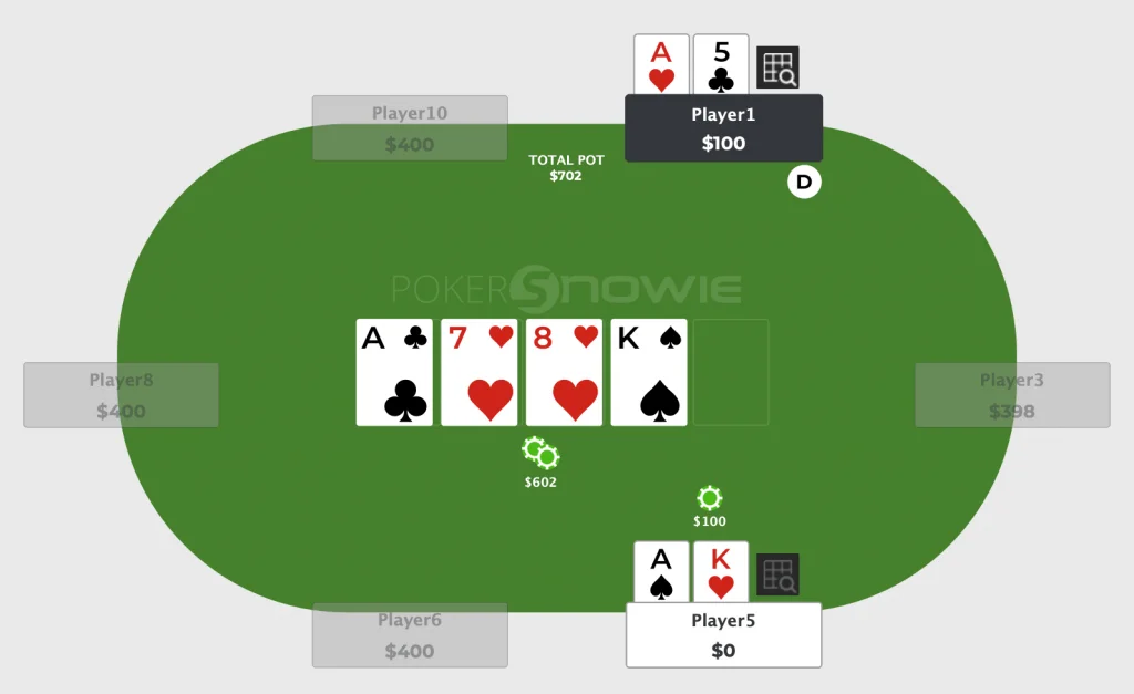 Since your hand () has an 18.18% chance of winning, the odds are in your favor. This situation is referred to as being pot-committed.